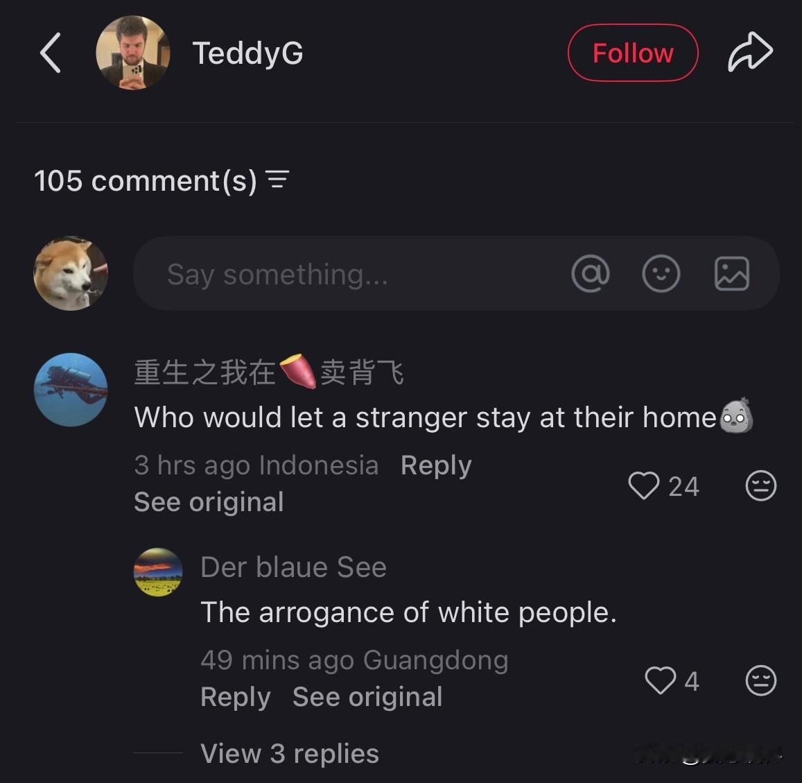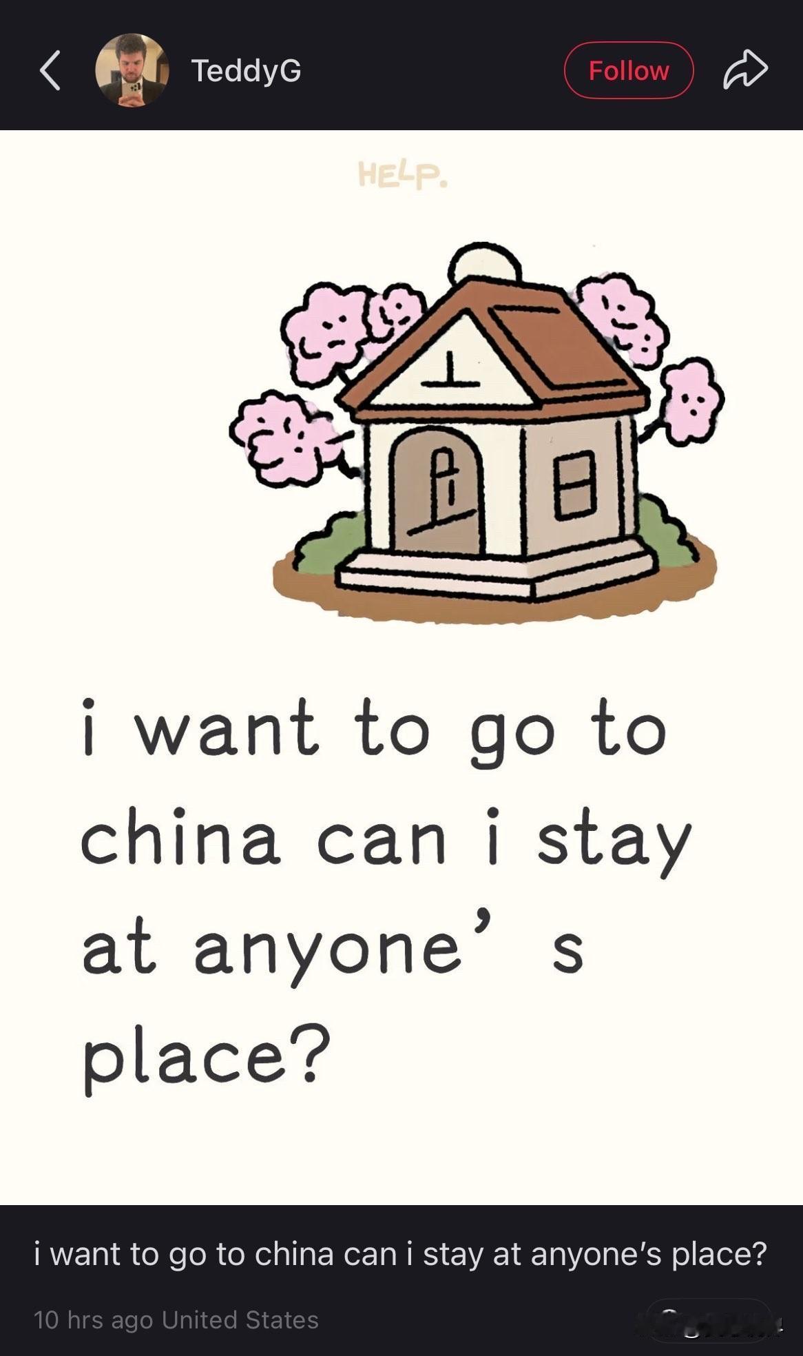 许多美国小伙子在小红书上询问中国网友,他们去中国旅游时是否可以借宿,但中国人一般不答应,因为在中国文化中,家是高度私密的空间。不熟悉的人,尤其是外国人提出借宿,非常唐突,感觉不礼貌。 跟美国比,中国住酒店太便宜了。连这么点费用都不想掏,这不等于白嫖嘛。像这样的老外,最好别来了。不但不能给我们带来什么旅游收入,估计许多好客都中国人还会被占便宜。老外可没有礼尚往来,你请他吃饭,他可没有回请的习惯。 外国游客在中国