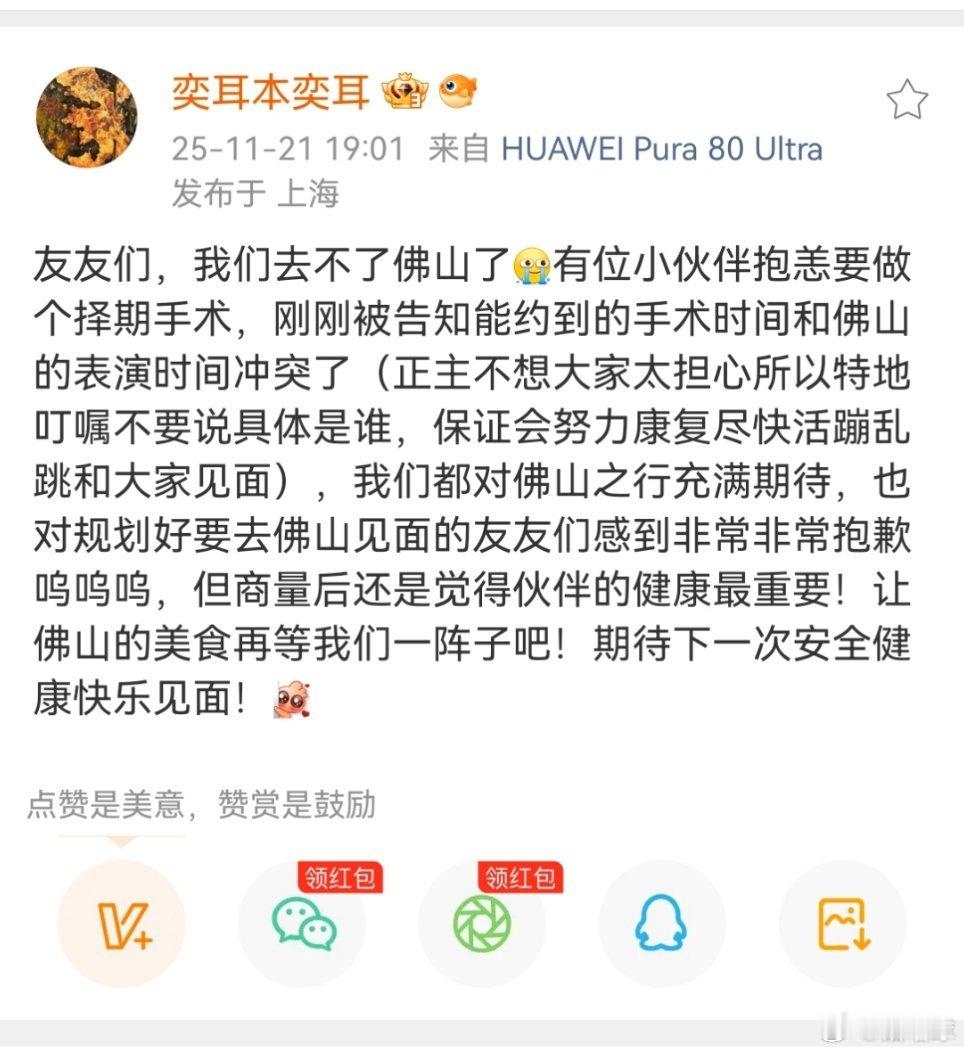 desire4去不了佛山音乐节了,有小伙伴要做手术,到底是谁呀,好担心呀,弄简妈