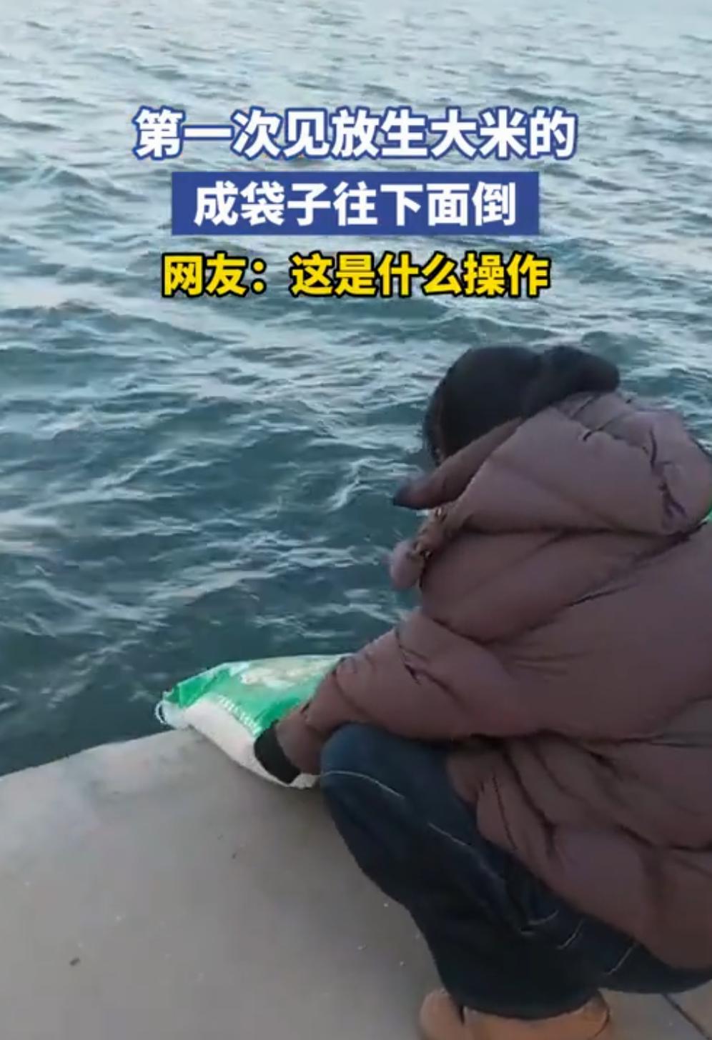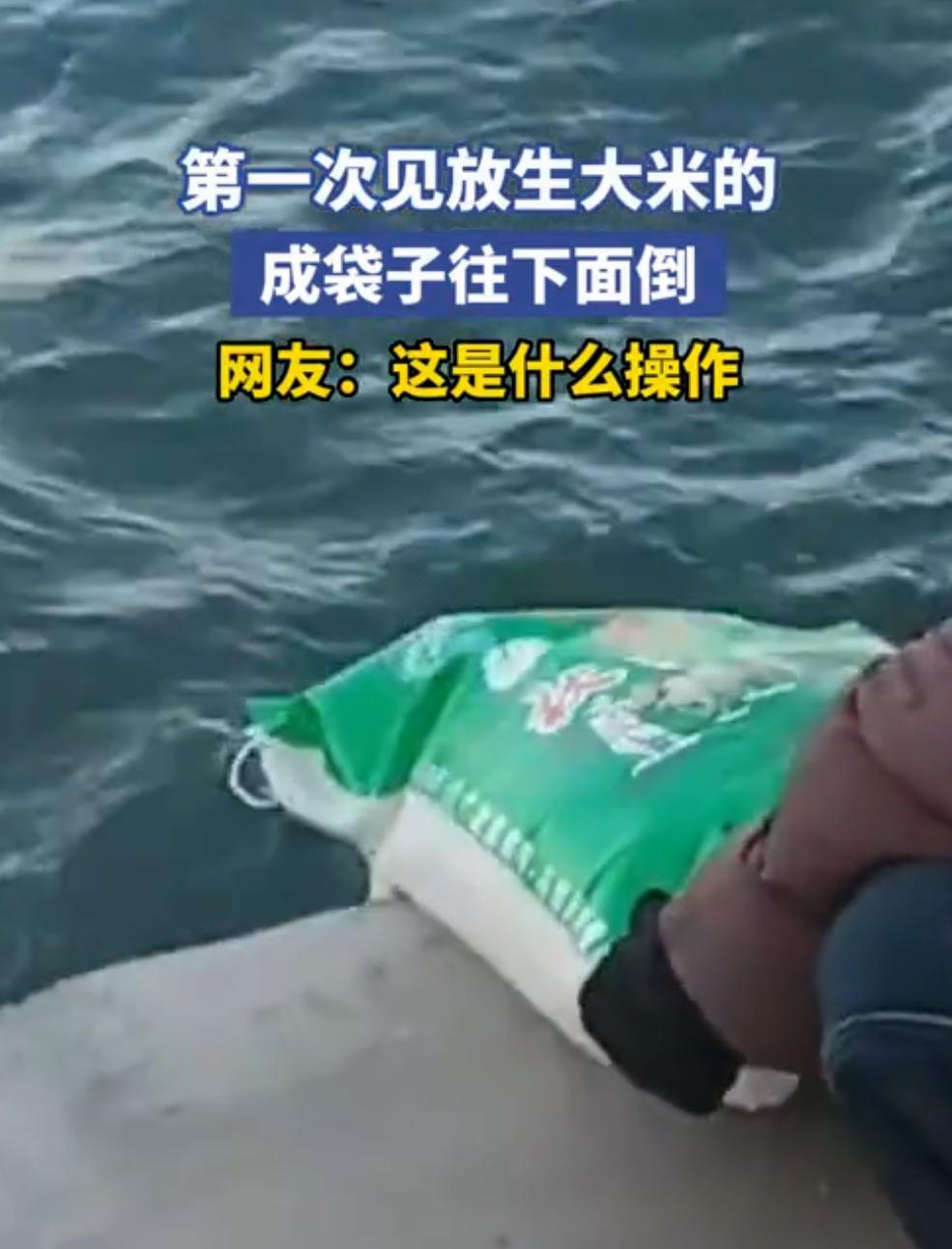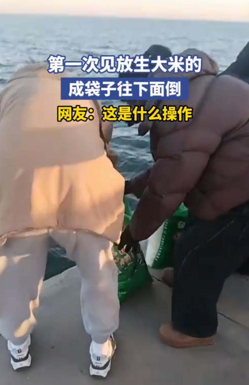胡闹!“放生”越来越离谱! 今天,网传辽宁葫芦岛有人往海里倒大米,美其名曰为“放