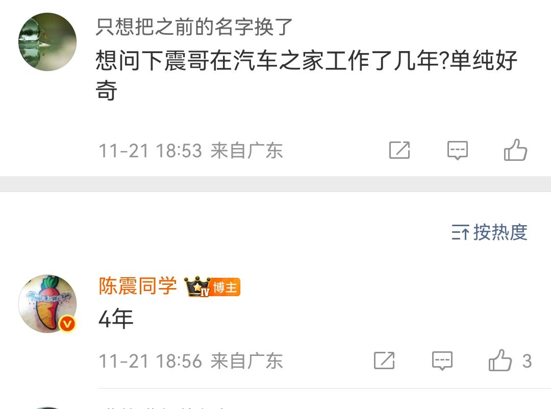 陈震:汽车之家20周年! 陈震回答说在汽车之家工作了4年,小编怎么感觉陈震在汽车之家待了很多年的样子,当时特别喜欢在汽车之家浏览相关的消息,喜欢看各种各样的车评。 特别是图文板块是格外喜欢浏览的,那时候手机的网速实际上还是不快的资费比较高,看视频挺麻烦的一般浏览的都是图文频道。 各位是怎么看的?欢迎评论区留言。