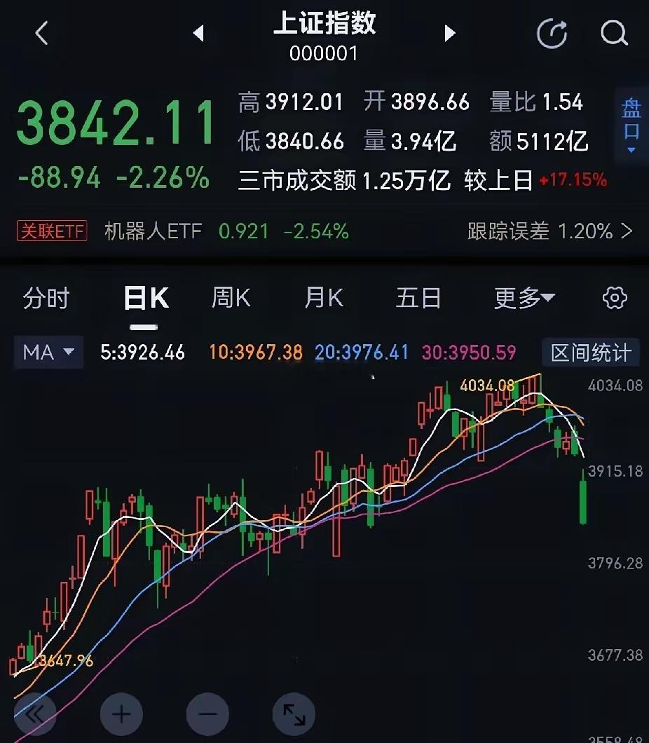 A股慢牛行情岌岌可危今日早盘A股大跌,最低跌至3840.66点。3922点的颈线位被跌破,而且形成了较大的下跌缺口,此缺口与前期的3950点缺口遥遥相对,一个可怕“孤岛”雏形形成。早盘准备清仓,但跌幅太大,终究没有下去狠手。后悔晚矣。期盼下午某队出现,挽狂澜于既倒,扶大厦之将倾。