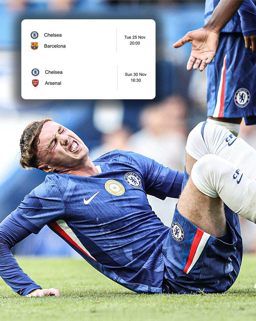 【帕尔默意外骨折】切尔西主帅马雷斯卡透露:“帕尔默在家中发生意外,导致脚趾骨折。他无法出战本周末对阵伯恩利的比赛,并且肯定缺阵接下来对阵巴萨和阿森纳的两场大战。帕尔默之前的腹股沟伤势,几乎已经康复了,但是现在又出现小问题,他的脚趾骨折了。”