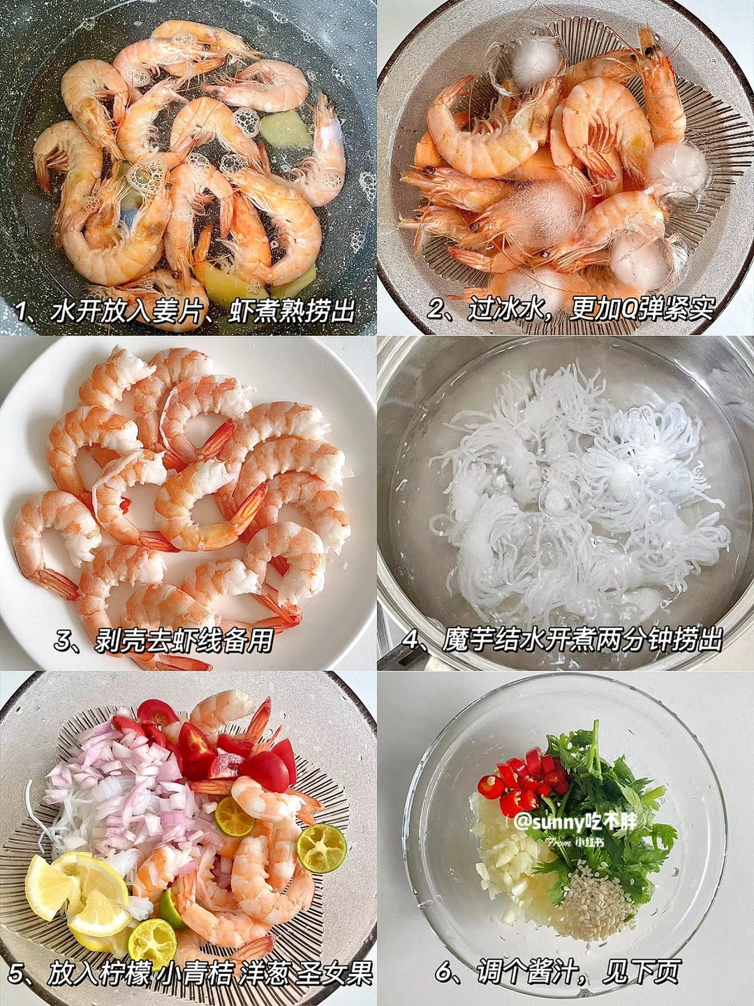 ▫️海虾洗净,水开下姜片,虾煮熟捞出过冰水