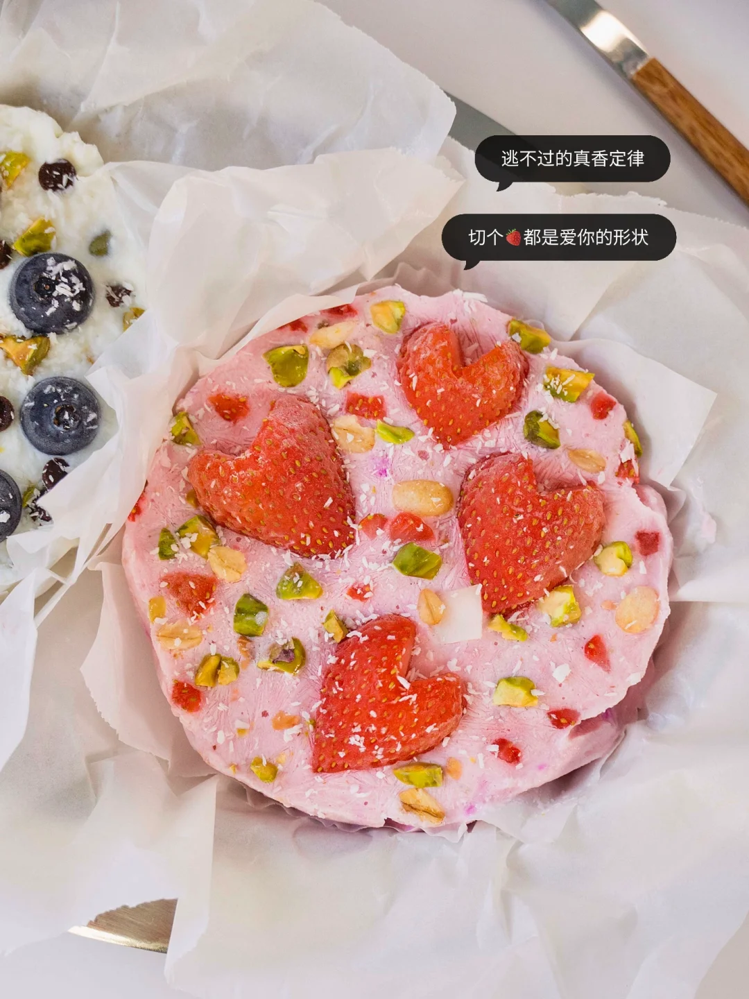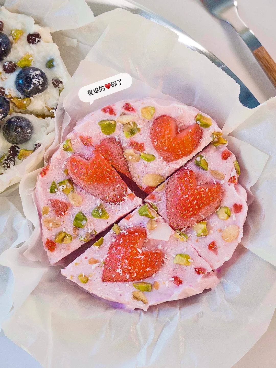 ▫️铺上草莓和开心果碎冷冻4h
