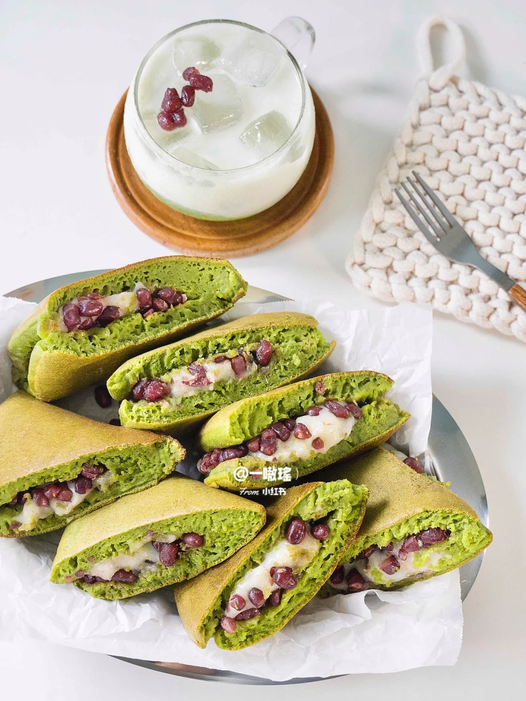 搅一搅平底锅就能做‼️抹茶麻薯红豆厚松饼🥞