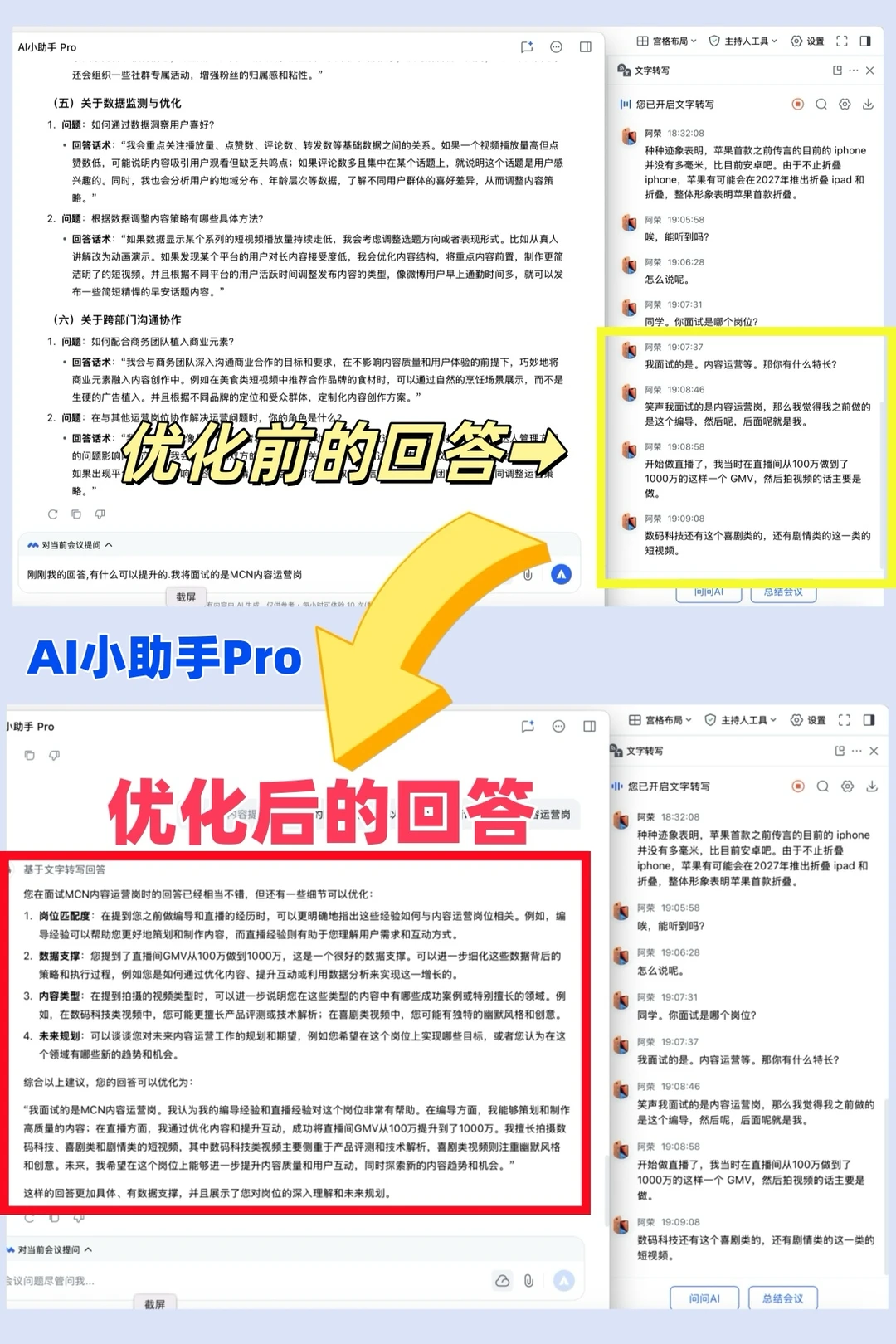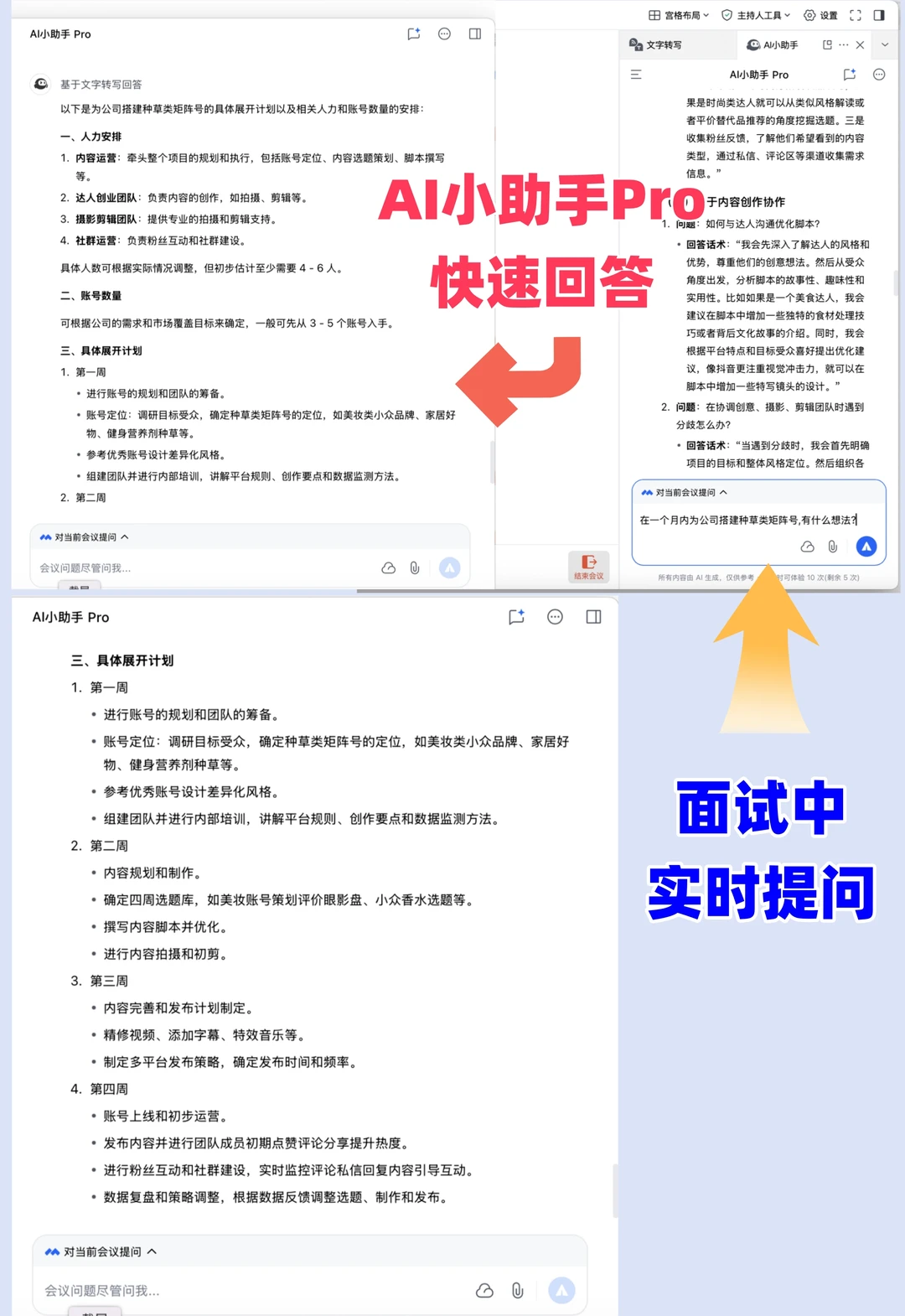 比如面试官问了一个关于 “MCN如何打造矩阵帐号” 问题,AI小助手Pro马上给出满分回答,简直“面试外挂”啊!以后面试再也不慌了……👍😎