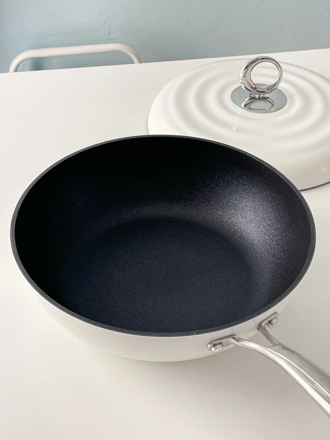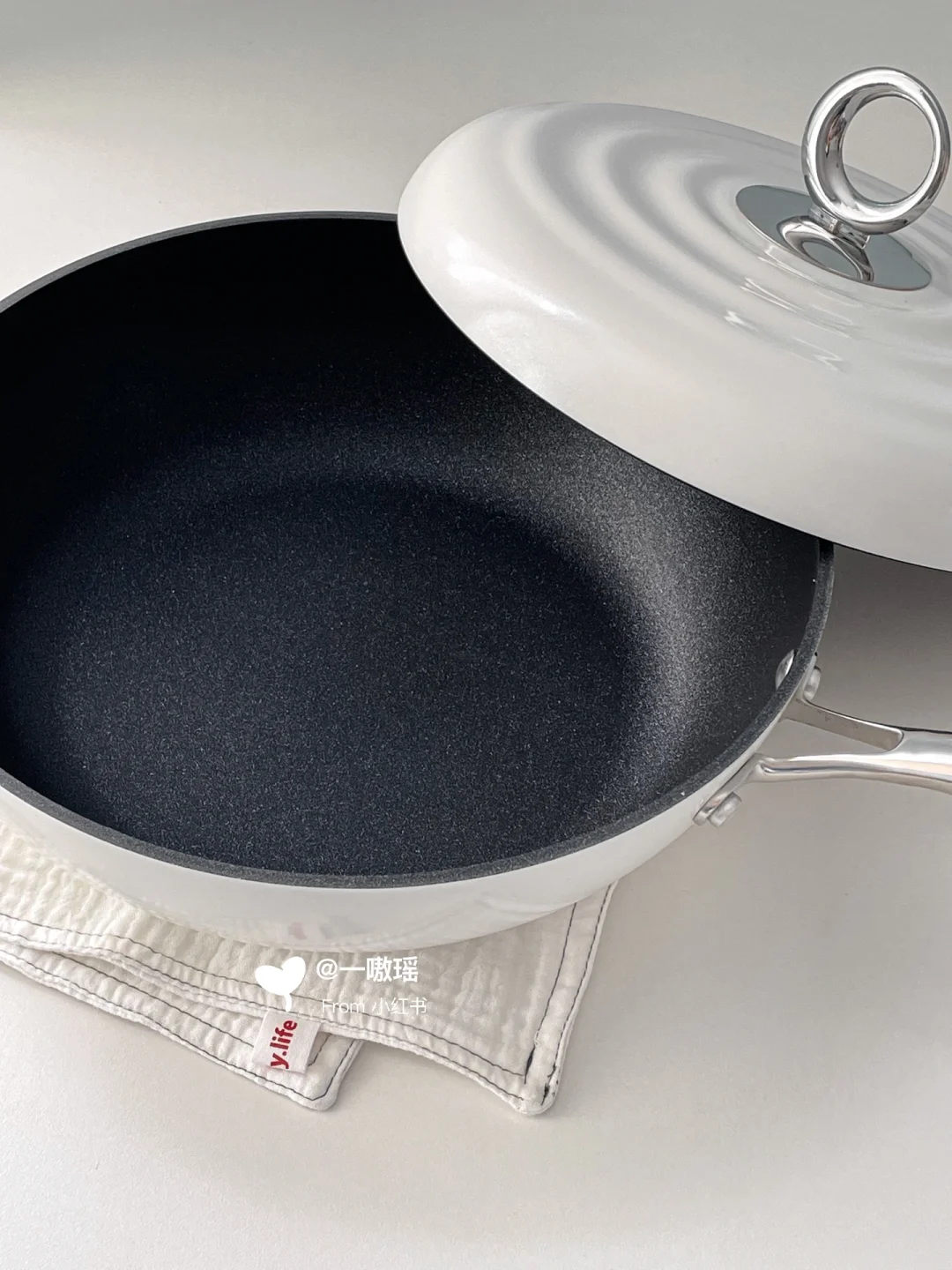 戳心窝的锅具推荐✨ dumik白月光珐琅平底炒锅🌙 煎炒焖炖样样行!使用频率No.1 🫶🏻 如果说厨房只能留下一个锅,必然是它 - ▪️大平底,且有一定深度,煎炒都合适 ▪️锅盖有43颗凝水点,更好的微压闷炖 - 虽然是珐琅锅,但不会很重,我一“弱女子”依然可以单手颠锅😆 表面很光滑,特别好擦洗🧽 用了仨月,锅底也没变黄✨ 是我心中的白月光没错了🌙
