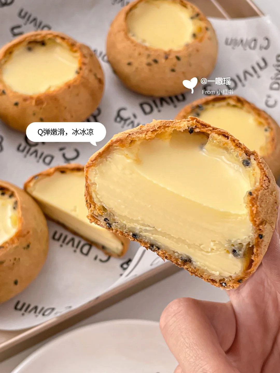 外层是糯叽叽有嚼劲的麻薯,里面是嫩滑浓郁、冰冰凉凉的蛋奶布丁🍮