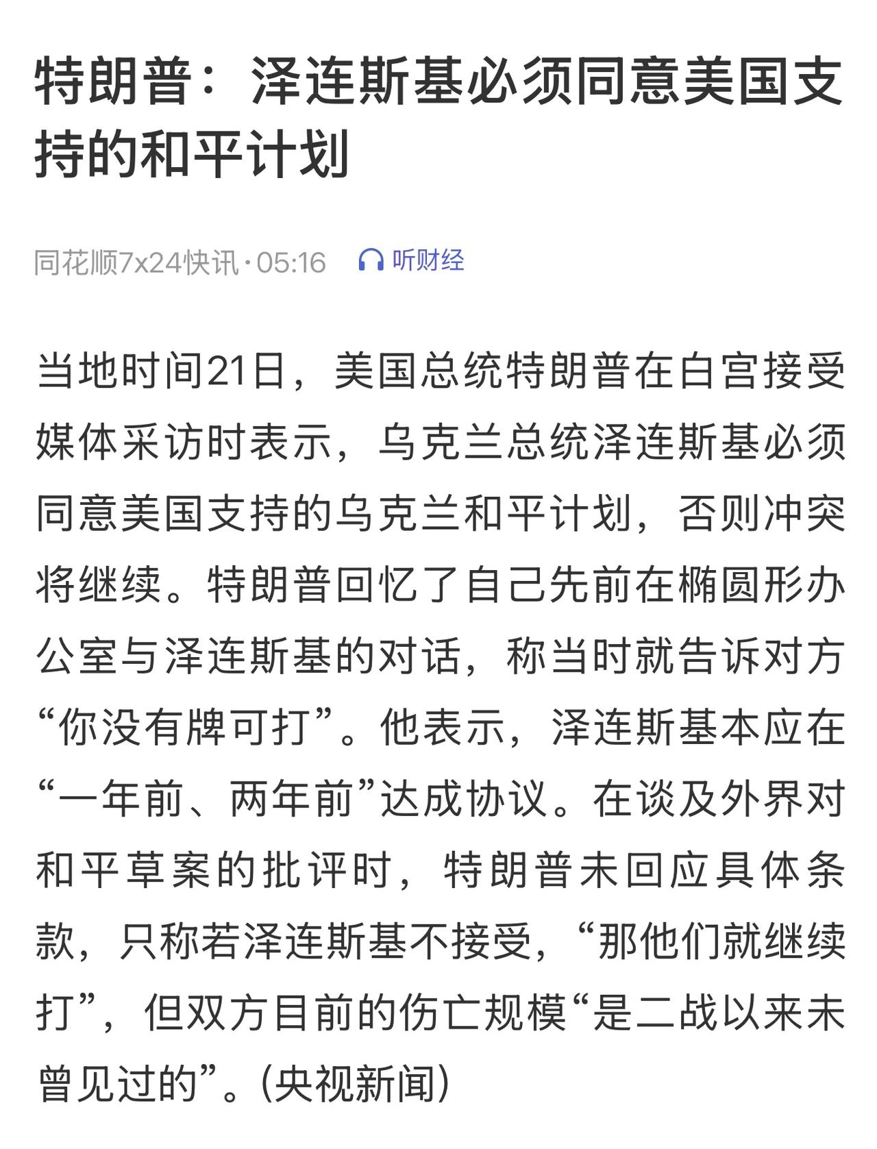 泽连斯基称乌克兰正面临最艰难时刻,可能在和平谈判中陷入“失去尊严”或“失去伙伴”的两难。但他强调,乌克兰会与盟友寻求解决方案,绝不会让外界认为乌克兰在破坏和平。