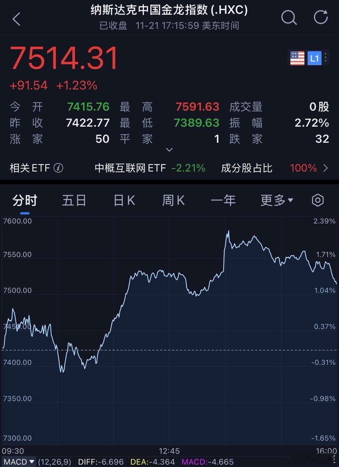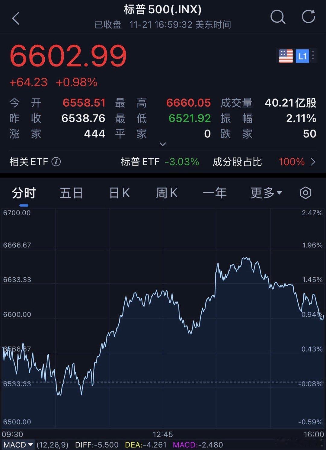 老板们早安,打卡养铁咯昨夜三大指数集体收涨,道指涨幅最大,上涨约1.1%。截至收盘,道琼斯指数涨1.08%,报46,245.41点;标普500指数涨0.98%,报6,602.99点;纳斯达克指数涨0.88%,报22,273.08点。但周五的反弹仍不足以弥补本周之前的大跌,纳指本周累计跌2.74%,标普500指数跌1.95%,道指跌1.91%。热门中概股多数上涨,纳斯达克中国金龙指数涨1.23%。国际金价站上4100美元。
