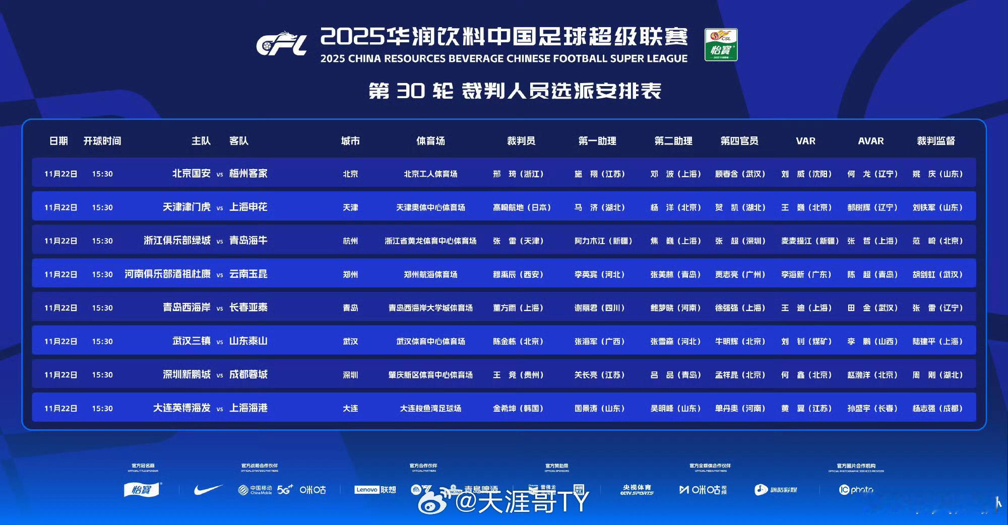 据悉今天主裁判全是国内裁判。可能是临时调整,不要急会很快。