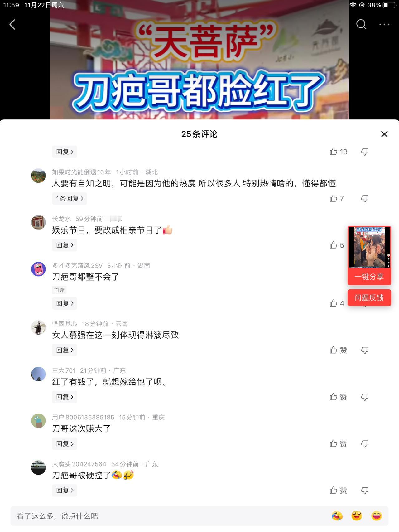 刀疤哥红了!大力说有一千个女人想要嫁给他!刀疤哥不置可否。这不,女人来了! 都是冲着流量来的女人,太现实了!祝刀疤哥在决赛中发挥的更好,拿下奖金。好笑哦!马上零度了,那七星山死冷的,那要不是,穷的底掉,谁还想继续比赛! 最惦记着12块钱的那份盒饭,可以无限续肉。 刀疤哥的确有两下子,野外生存技巧真不少。穿的那身贵州首富送的衣服,卖的也不错。品牌方还想跟他合作。好起来了!造星成功了!穷星,底层人民出来的新星,也算资本积了德了!