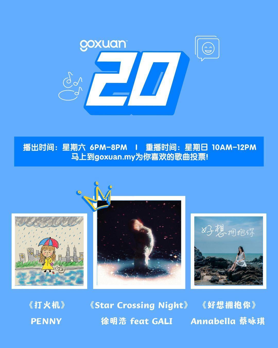 徐明浩新歌《Star Crossing Night》本周马来西亚电台GOXUAN 20 夺冠