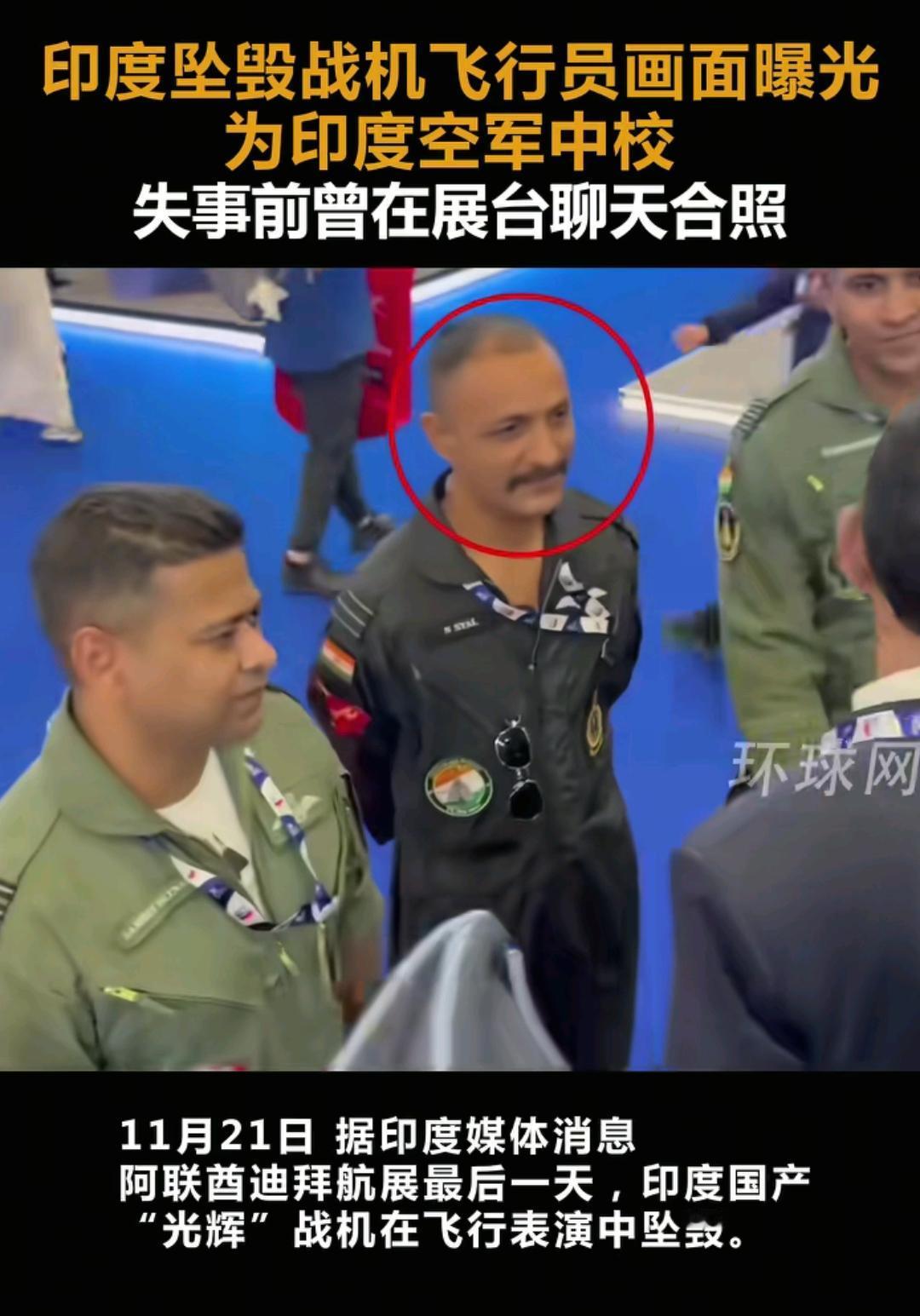 印度坠毁战机飞行员画面曝光!事前曾在展厅聊天合影! 本来到航展上,就是做一个相对来说任务难度不太高的演示飞行,结果印度的飞机在航展上坠机了,由于坠机的时候没有给飞行员反应时间,该飞行员没有成功弹射。 值得注意的是,在航展前几天飞机还曾经出现过漏油的情况,第2天的时候漏油就被修复了。 各位是怎么看的?欢迎评论区留言。