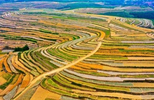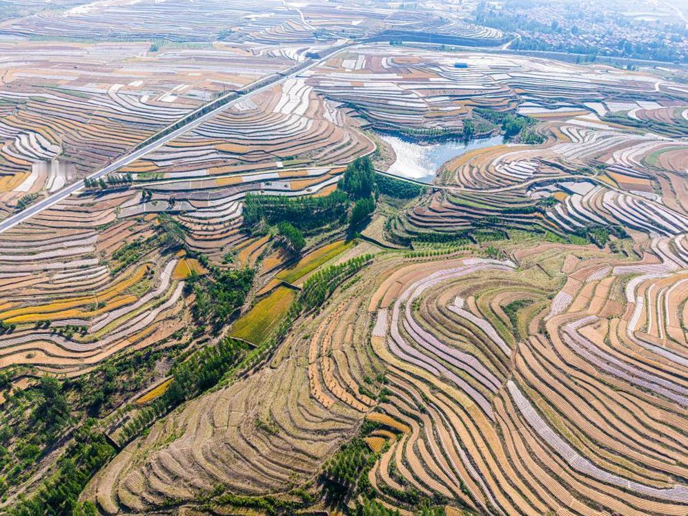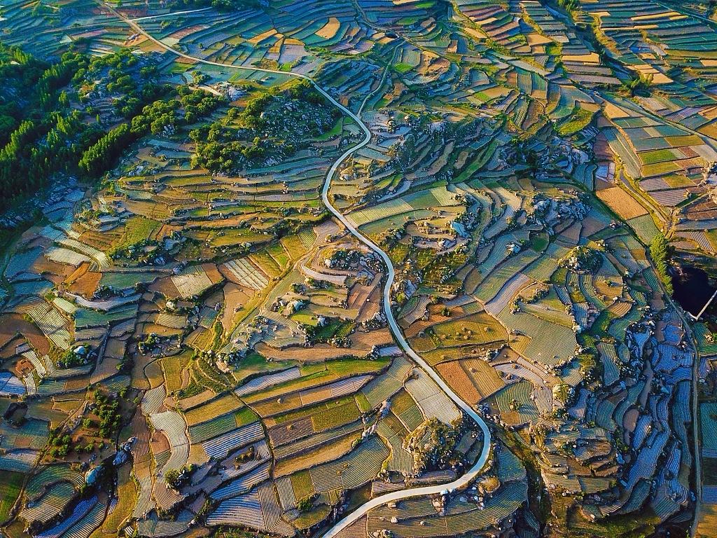 山东五莲的梯田好美[大笑] 日照五莲的梯田是大地的艺术杰作,可从下角度欣赏。 景观形态:梯田层层叠叠,顺着山势蜿蜒盘旋,如链似带、高低错落。从空中俯瞰,阡陌纵横的田埂宛若龙蛇飞舞,又似大地的“指纹”,勾勒出优美灵动的曲线。 色彩变幻:四季如画,色彩纷呈。初夏时五颜六色,像大地的“调色盘”;秋收季与云海交相辉映,宛若仙境;冬日在暖阳下,线条优雅生动,构成秀美的田园画卷。 人文与生态:它是当地群众辛勤智慧的结晶,承载着农耕文明。如今与民居、公路、风力发电机等交相呼应,既展现了生态和谐之美,又成为展示当地生态文明建设和产业发展的窗口,吸引着八方游客,是人与自然共生的生动写照。 (文陈士健 图友友)