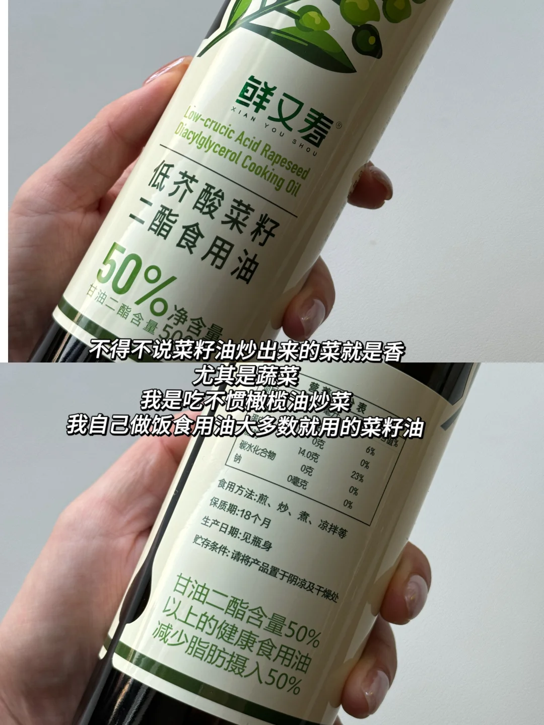 近期用的比较满意的一款菜籽油分享给减减期的姐妹们,这款“鲜又寿二酯油”相较于其他普通菜籽油的区别在于, 它的甘油二酯含量≥50%,二酯油的核心功效就是减少脂肪堆积,其D谢路径不同于普通的油脂,更倾向于被身体燃烧供能,而非合成脂肪储存,所以在✂️期担心摄入太多脂肪的宝子可以尝试一下,算是一款减卡不减味的食用油啦。
