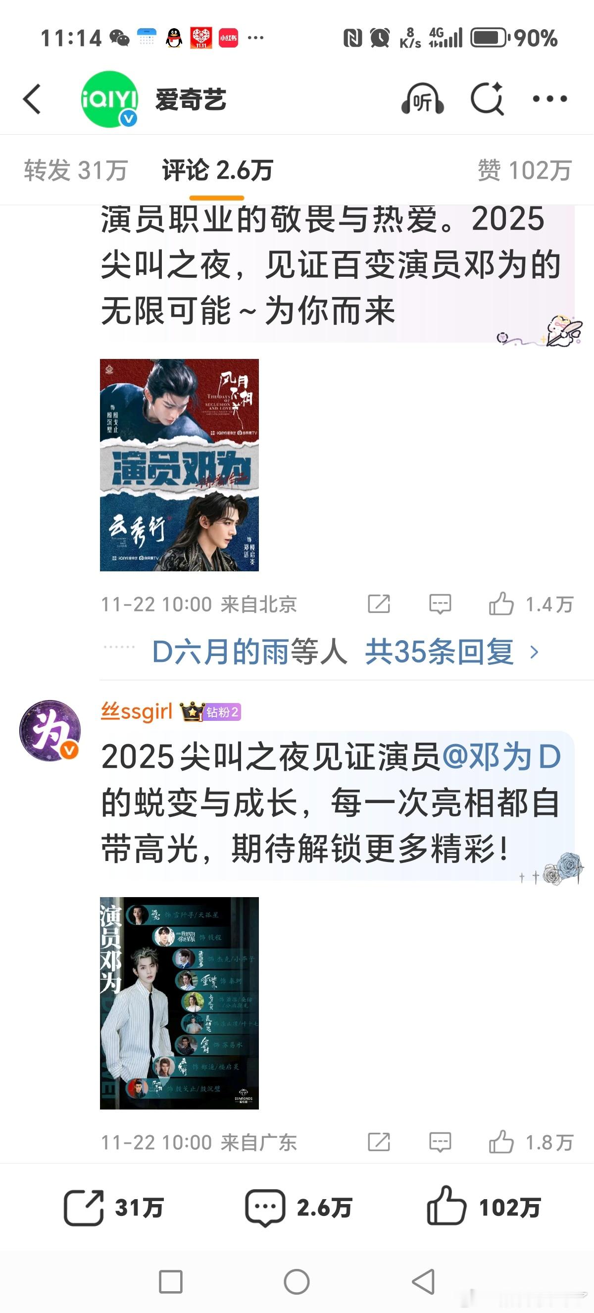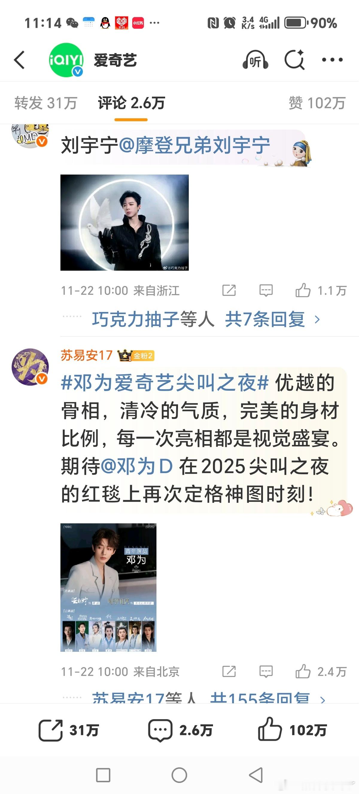 ber,爱奇艺尖叫之夜官宣阵容邓为粉和刘宇宁粉2家在battle,94生前30不