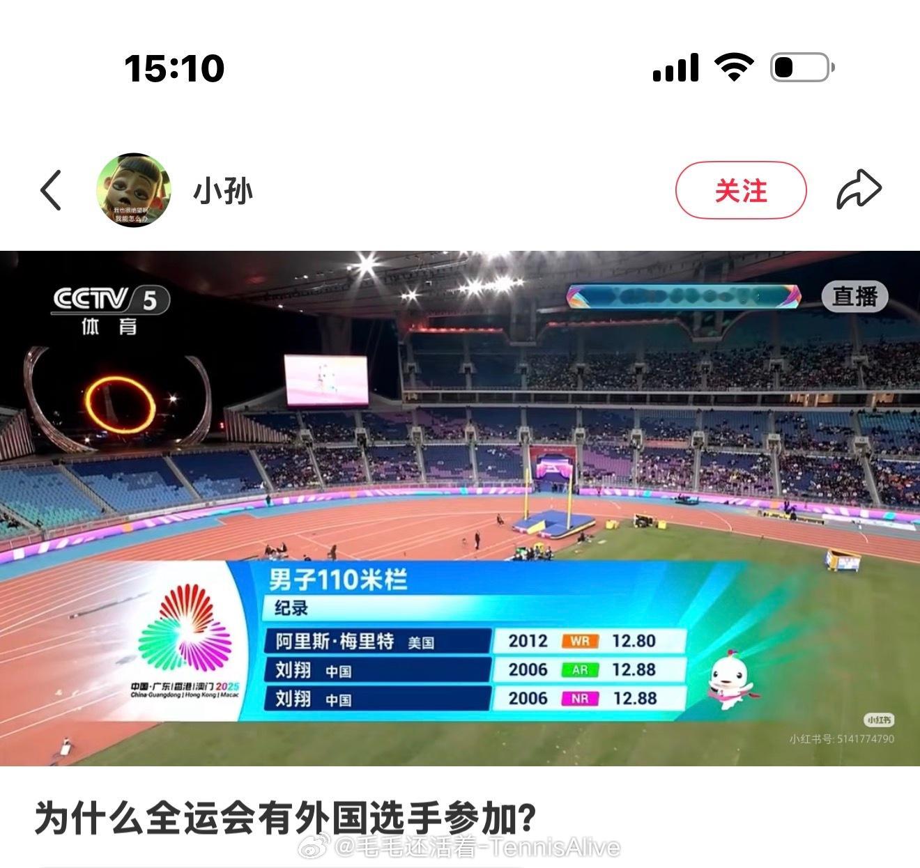 刷小某书被笑到,po主:为什么有外国选手参加全运会? 我:???
