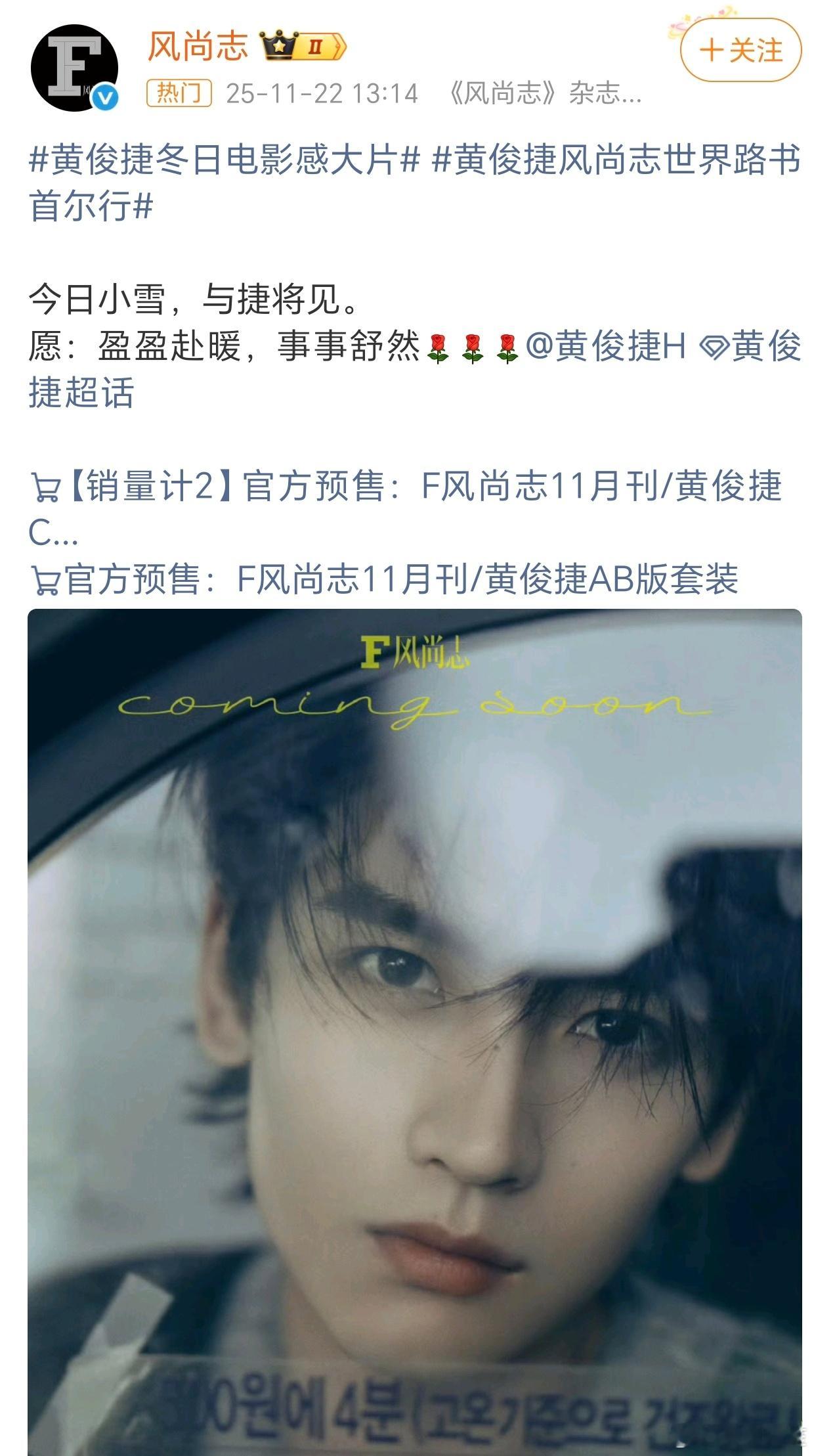 黄俊捷风尚志封面来了,他好适合冬日的妆造,帅得像水晶雕刻的一样