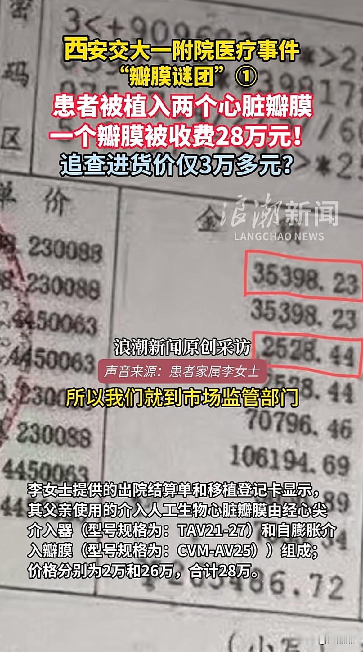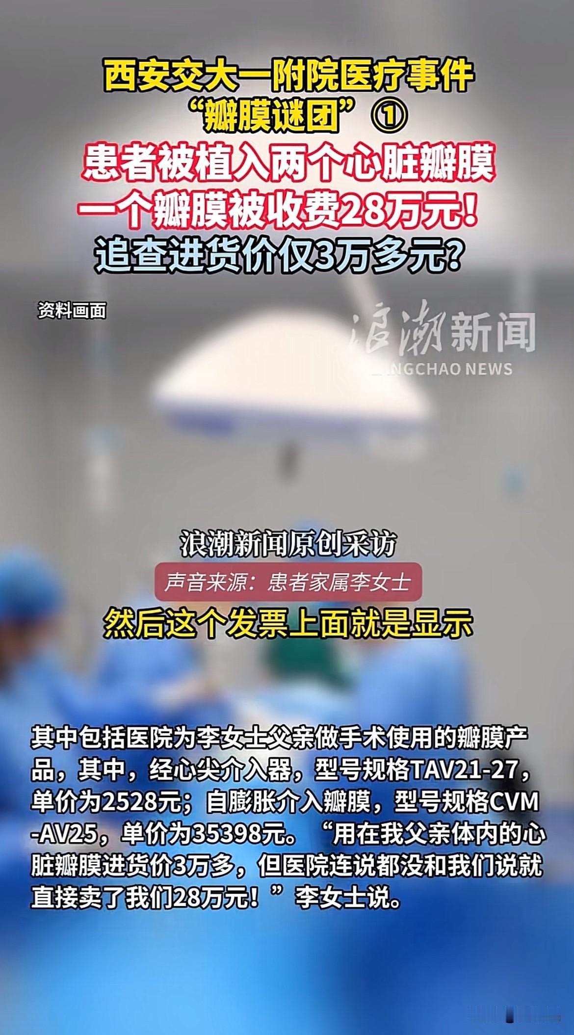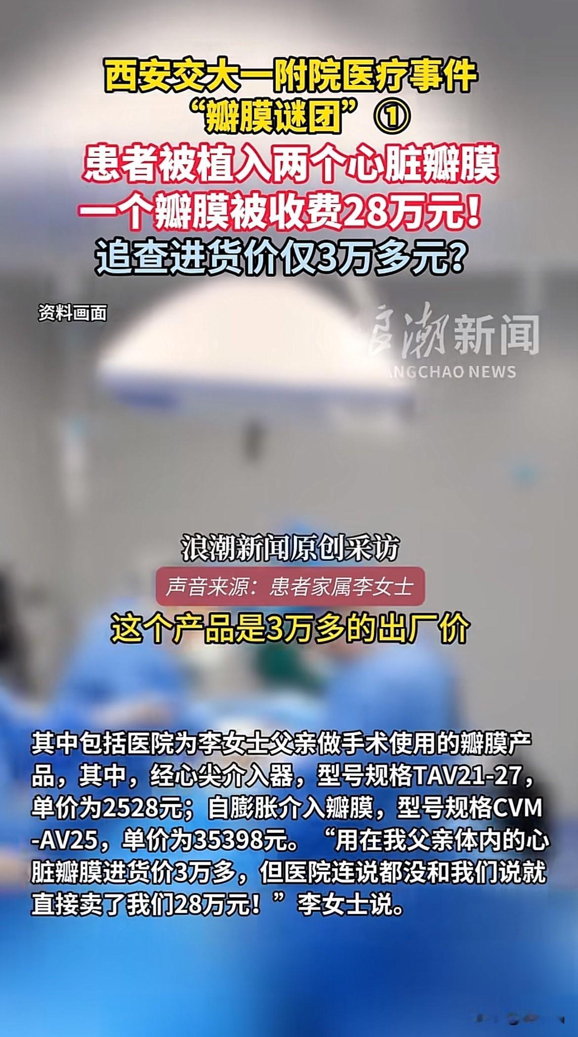 60多万心脏手术费用违规一事又爆出猛料,出厂价3万多的心脏瓣膜,医院卖出28万高价。 患者家属李女士透露,其父亲手术后被植入两个心脏瓣膜,医院告知第一个放置失败,在没告知家属的情况下,又放置了第二个,而第二个放置的瓣膜医院收费28万。重点是前一个放置错的瓣膜也没有取出来,这是手术啊,放错的医疗用品不取出来任其留在体内?太吓人了! 事后李女士向市场监管部门举报,经查实,这个收费28万的心脏瓣膜成本价只要3万多。9倍多的利润着实吓人,作为医院,本该是救死扶伤,怎么变成了利益的资本市场? 医疗是民生大事,医院这种违规收费、过度医疗的乱象必须彻查,否则透支了医院的公信力,老百姓有病都不敢去医了。 图源浪潮新闻、温州都市报