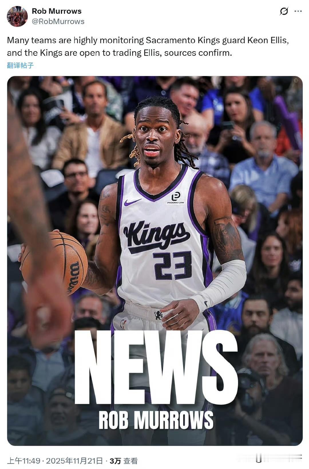 230万廉价后卫引轰抢!!!国王对交易埃利斯持开放态度! 根据记者Rob Murrows最新消息透露,我得到确切消息,目前联盟中有多支球队都在关注国王后卫基昂-埃利斯的动向,而国王也愿意交易他,当时是在筹码合适的情况下。 本赛季国王队后卫人满为患,这也导致埃利斯没有得到足够的出场时间,不过埃利斯仍被认为是非常有潜力和即战力的球员,因此他吸引了不少球队的注意力。 国王本赛季已经有倒数第一的趋势,他们和鹈鹕不相上下,不过今天鹈鹕又输了,这也让他们暂居倒数第二。 国王队开启交易是早晚的事儿,在小萨受伤的情况之下,埃利斯将会成为交易市场的香饽饽,哪支球队会有幸得到他呢? 国王队阵容 国王队球星 基昂埃利斯
