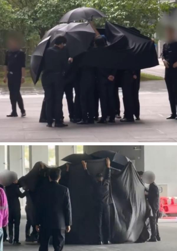 谍战片现场彩排 广州车展的"撑伞黑衣人" 今年广州车展,一组"黑衣人撑黑伞围堵"的画面成为了大家茶余饭后的谈资。 有记忆的是从2021年特斯拉车主维权开始,保安用黑伞黑布快速"控制现场"之后,这种方式便逐渐成为了各大厂商的“基操”,只是今年广州车展更甚,重磅待发布车型纷纷由撑伞黑衣人全程防护,场面堪比谍战片。 比较值得玩味的是,在今年广州车展上,各大厂商似乎也有意通过此方法吸引眼球,待镜头到来,撑伞黑衣人便以“涉及商业机密保护”为由驱赶媒体人,讲道理,真涉及到商业机密,何不在展台搭建时就做好隔离措施?现场临时用黑伞围堵,多少有些“此地无银三百两”的意思。 点个关注吧!汽节车社,车圈热点资讯每日一扫清!【来自懂车帝车友圈】
