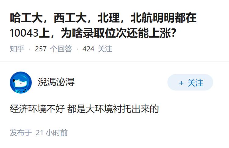 哈工大,西工大,北理,北航明明都在10043上,为啥录取位次还能上涨?