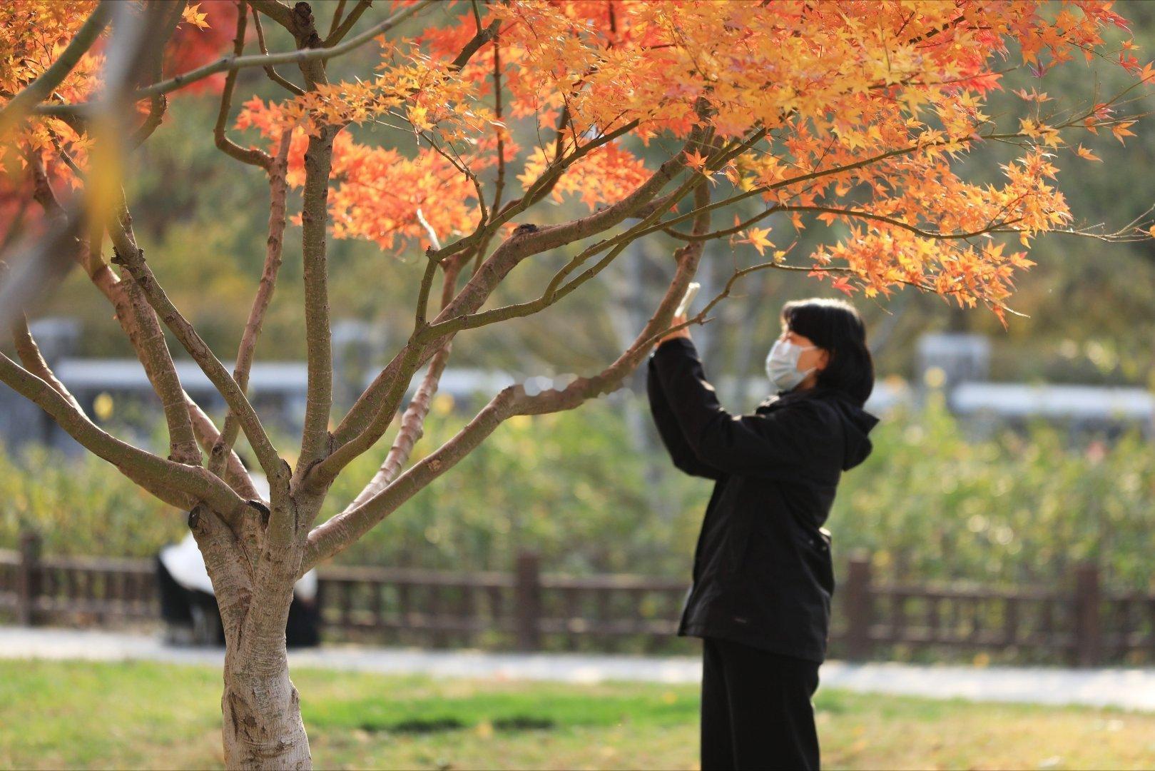 冬日生活打卡季秋日红叶下的时尚少女,清新自然,尽显青春活力!🍂💃