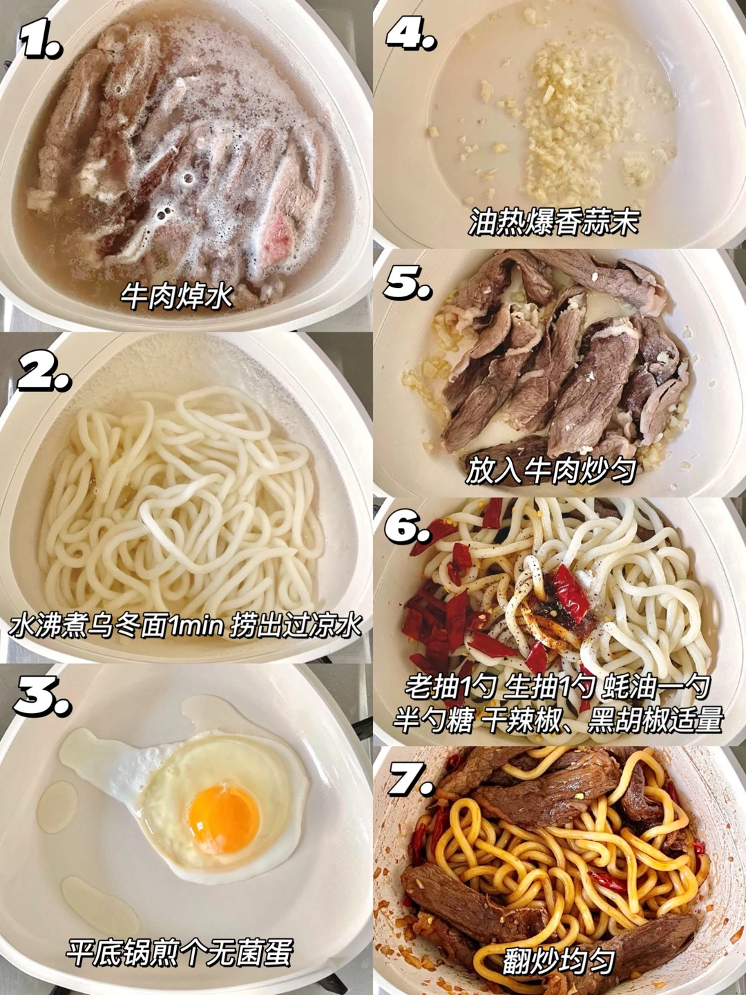 和牛 乌冬面 蒜头 干辣椒 鸡蛋