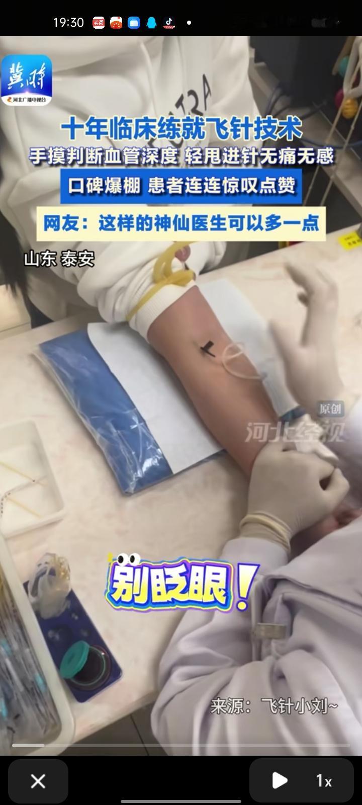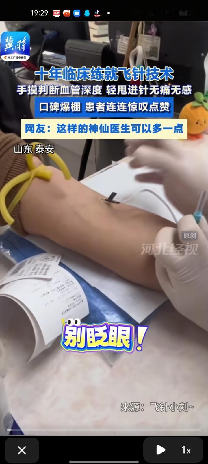11月22日,山东泰安。十年临床练就飞针技术,手摸判断血管深度,轻甩进针无痛无感,患者连连惊叹点赞。 护士刘蒙表示,弹针时要能感觉弹多大的力度,自己有十年的儿科工作经验,在此基础上练了半年,在保证能一针见血的情况下以最快的打针速度减轻患者的痛苦