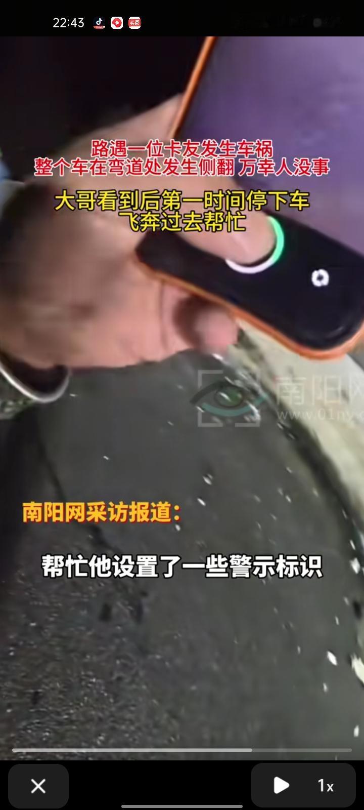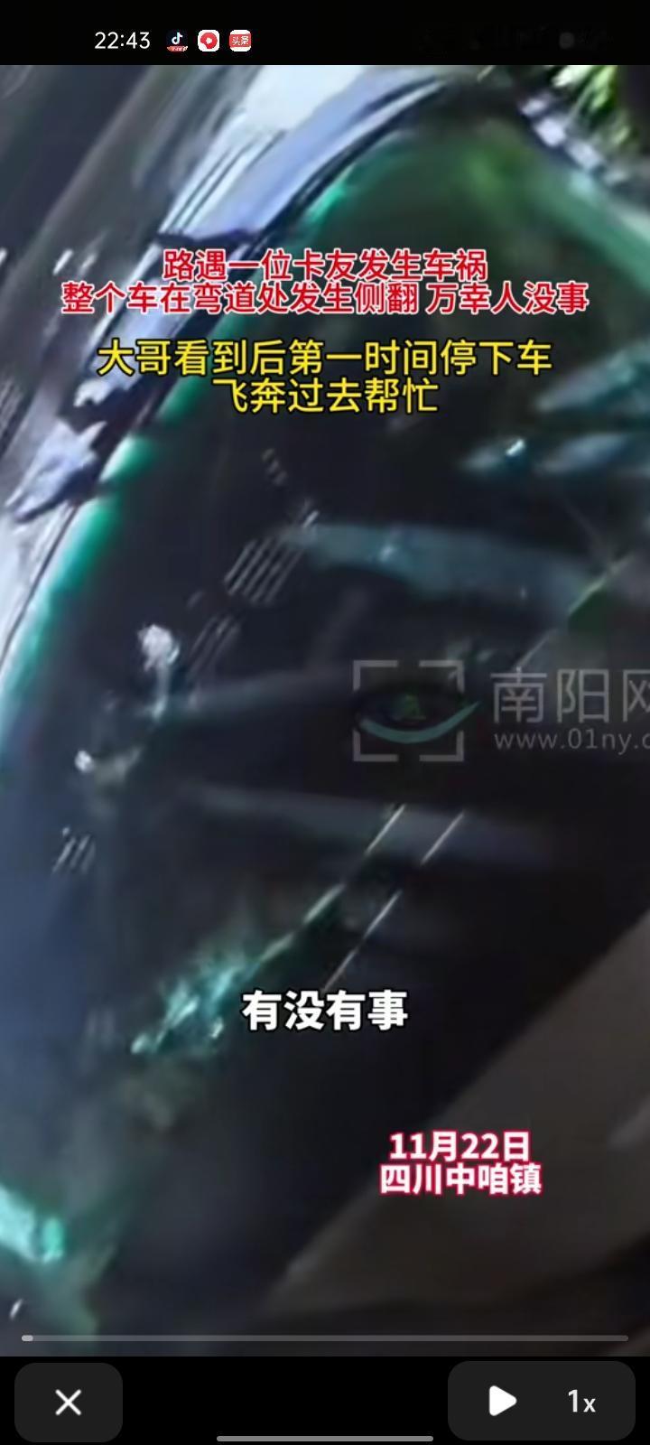 11月22日,甘孜州巴塘县。男子遇到一位卡友发生车祸,整个车在弯道处发生侧翻。随后,男子第一时间冲过去把人救出来,好在人没事,并帮他设置一些警示标识。据了解,这位卡友应该是没有高原驾驶的经验,也可能是车辆出了故障。 当事人称,卡友们一起建了一个群,路上有什么事情相互告知,互相照应。