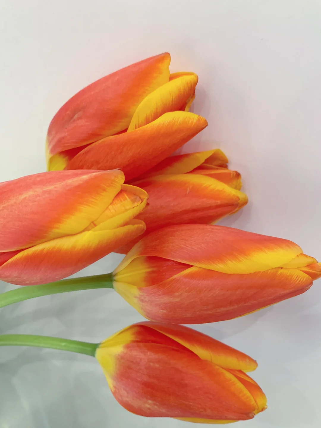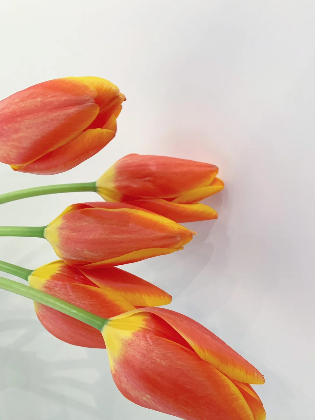🟧🟨搭配:郁金香可做开瓣处理,吸色处理,使其花型花色更加美观。搭配自然风、现代风、韩式风等风格花束均可;插花中作为跳跃性花材能够优化整个作品。