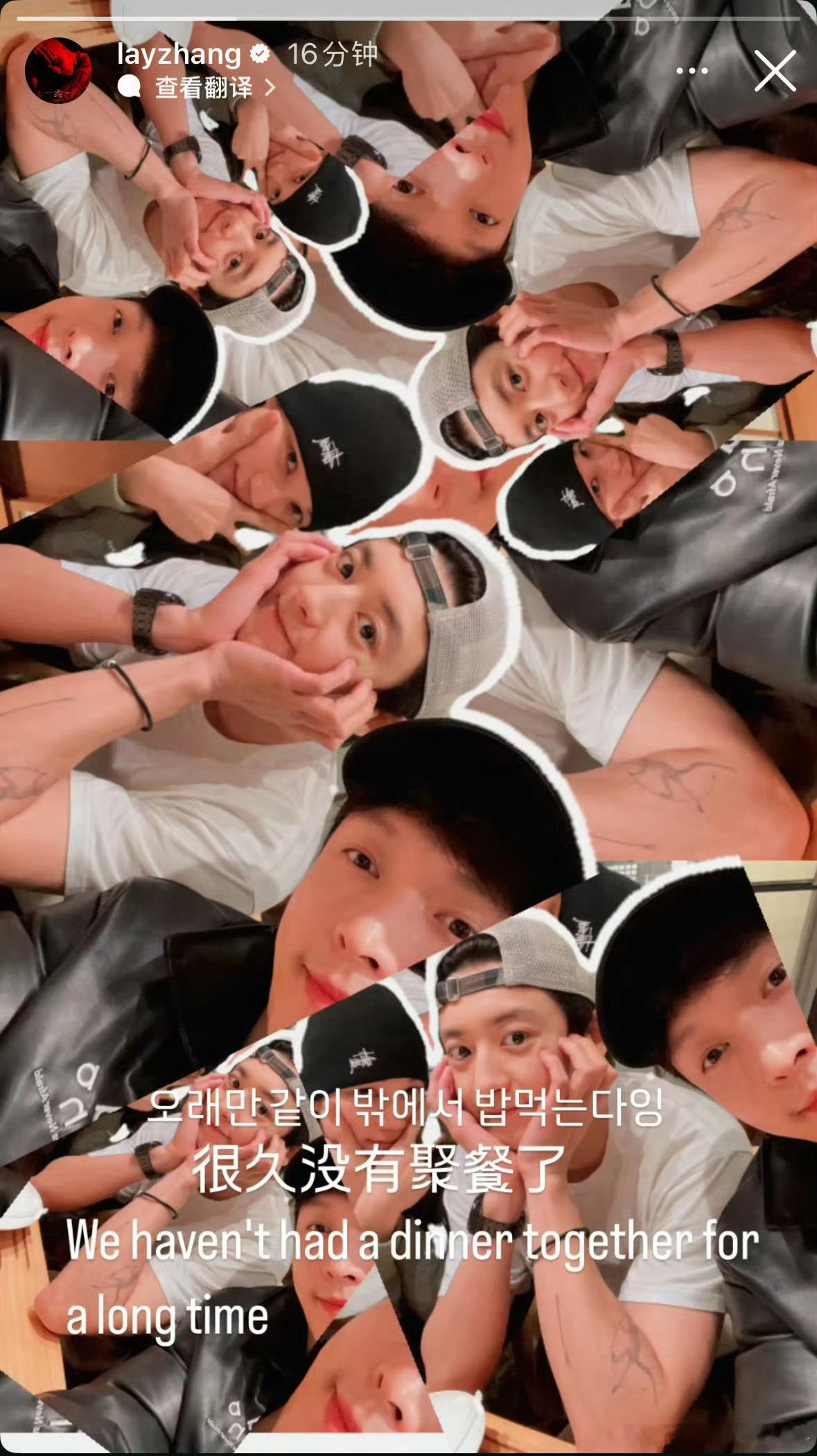 张艺兴发了与朴灿烈金钟仁的聚餐合照