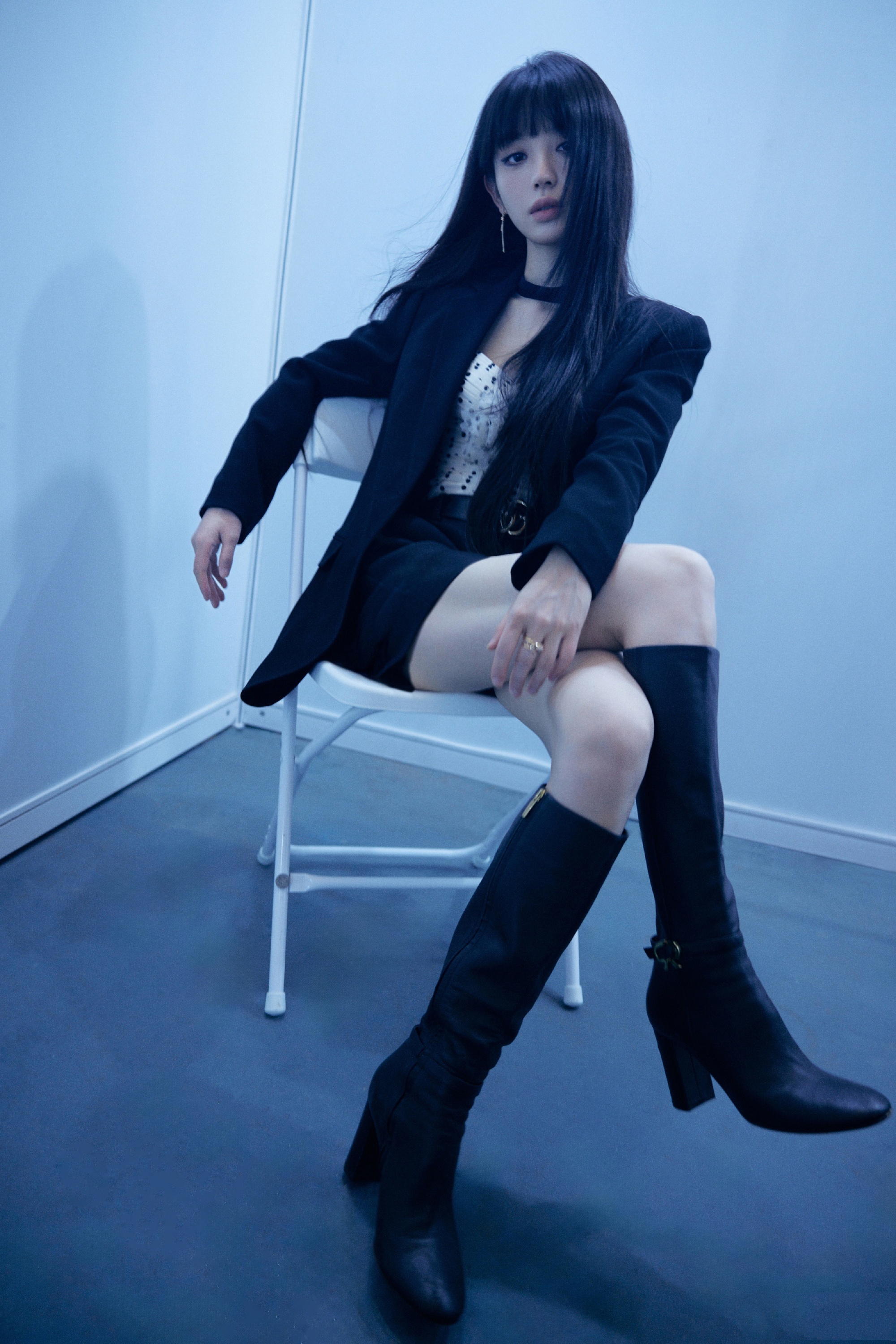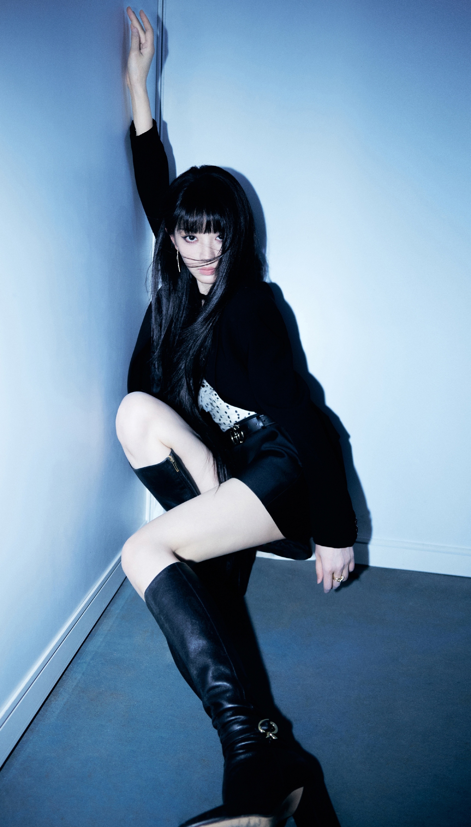 这身黑套装太好看了!短款上衣+短裙刚好显腿长,光腿神器配厚底长靴