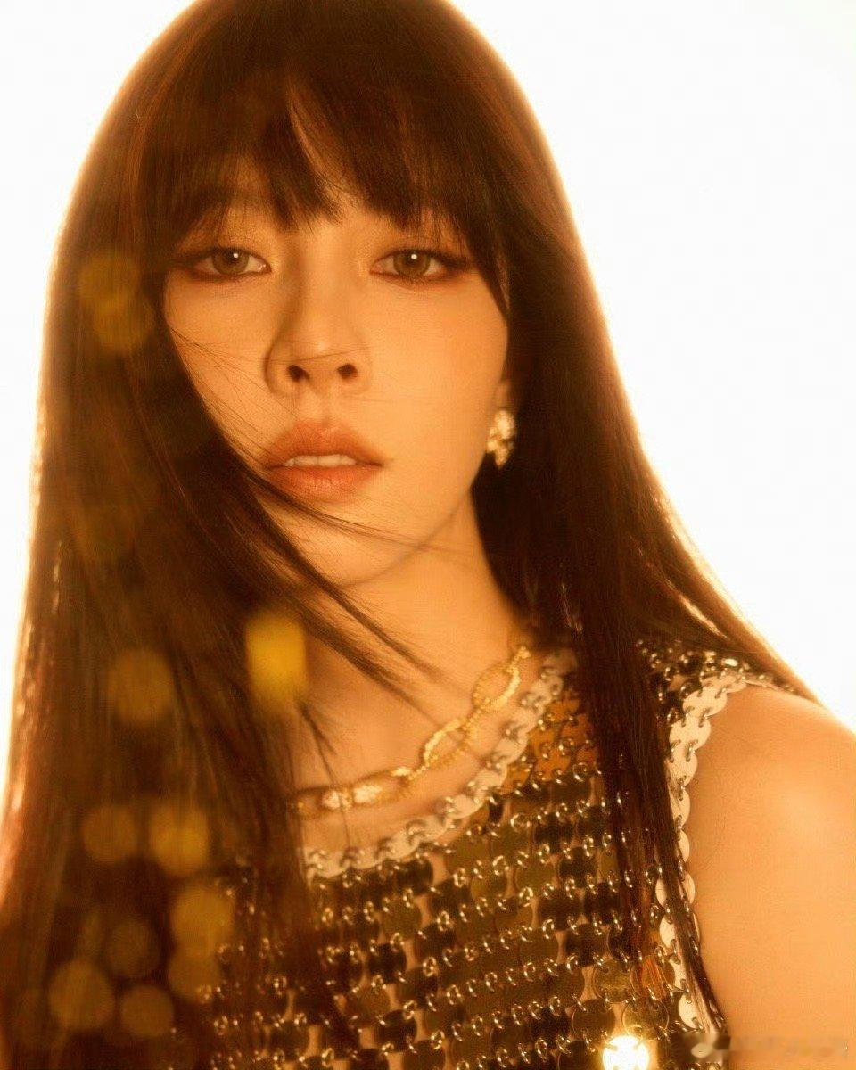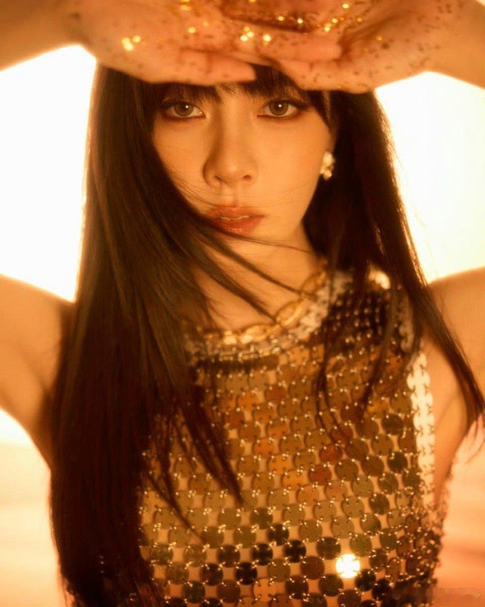 宋妍霏的齐刘海烟熏妆太可了!既保留了清纯感又增添了时尚度,闪片裙在灯光下波光粼粼