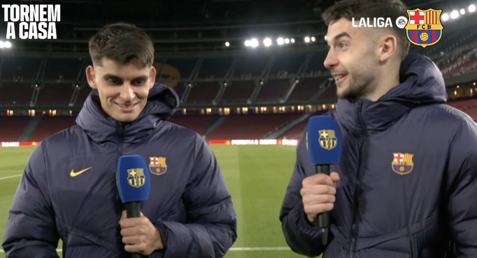 今天到达诺坎普时,气氛如何?杰拉德·马丁:“感觉太棒了……我们一直渴望回到这里,而且比赛结果也十分完美,所以我们非常高兴。”胡安加西亚:“我总是第一个出去热身,也是最早进入场地的人之一,说实话,我们出来时的气氛让我非常惊讶。我们感到非常高兴,比赛也很完美,所以现在我们非常开心。”