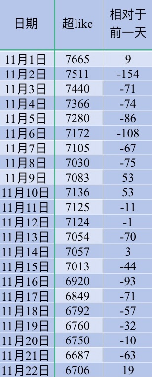 wxy 昨天的超喜欢和发帖人数下降了,但超喜欢底数上升