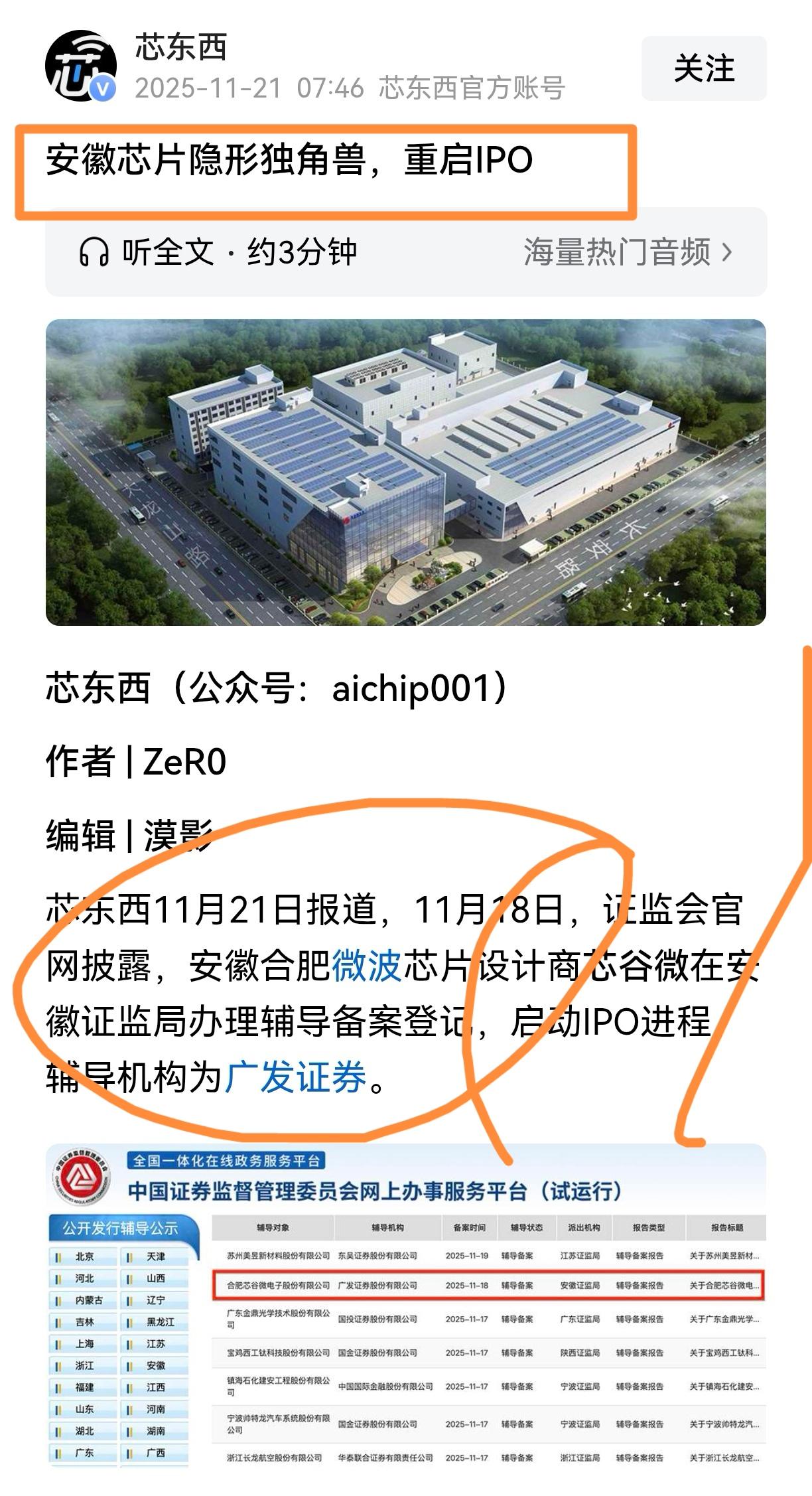 毛利率超茅台,三年狂赚1.3亿!安徽独角兽重启IPO,正破解最致命的“卡脖子” 2025年11月18日,证监会官网披露:安徽合肥的芯谷微芯片公司,正式启动IPO。 这家公司什么来头?专攻军工芯片,毛利率碾压茅台,堪称芯片界的“隐形印钞机”! 更传奇的是它的经历:去年冲刺上市却主动撤退,如今仅隔一年半就卷土重来。这不是简单的资本运作,而是一场关于核心技术自主的生死突围。 在普通芯片被卡脖子的今天,这家扎根合肥的企业,正在另一个更关键的赛道默默筑起护城河。它的故事,远比财务报表更精彩。 名字叫芯谷微,干的活儿特别硬核——专门造“军工芯片”。 你可能要问,这有啥特别的?别急,看三个数字,你就懂了: ①赚钱能力吓人:它每卖100块钱,毛利润能高达80多块!这水平,快赶上茅台了。 ②长得飞快:收入三年几乎翻了一番还多,年增速超过50%。 ③利润厚实:赚来的钱,超过一半都能稳稳落袋为净利润。 这财务数据,跟咱们熟悉的手机、电脑芯片公司完全不是一个画风。为啥?因为它活在另一个“世界”——国防军工。 这里的游戏规则就八个字:性能至上,价格靠边。 它的芯片,是用在雷达、保密通信这些尖端装备上的。要扛极端温度,要抗干扰,要绝对可靠。这东西,不是你淘宝买块料就能自己焊出来的,技术壁垒就是它最深的“护城河”。 创始人刘家兵,中科大毕业,还在国家级研究所干过,是真正的“技术大神”。在军工这个圈子里,光有芯片不够,还得有绝对的信任和深厚的“Know-how”(技术诀窍)。他们卖的,是“芯片+信任”的打包方案。 更有意思的是,这家公司去年也申请过上市,但中途自己撤了。现在又卷土重来,这“撤退再冲锋”的戏码,背后有玄机。 很可能,上次是觉得故事没讲好。以前你只说会做几款厉害的芯片,资本市场可能觉得还不够。现在,它可能已经能提供更高级的“模块”和“组件”了,从一个“尖子生”升级成了一个“平台型公司”。这个故事,资本市场更爱听。 最后,说点更深的。咱们平时总聊手机芯片被“卡脖子”,但在更关键的国防领域,连被“卡”的资格都没有,必须100%自主可控。 像芯谷微这样的公司,就是在这个“生死线”上,一颗一颗地拧上我们自己的“技术螺丝”。它们不像AI公司那样天天上热搜,但它们的存在,是国家科技安全的“压舱石”。 所以,看芯谷微,不能只看它赚了多少钱。它的真正价值,在于它是不是“不可替代”,在于它在我们自主供应链上,占了多么关键的一个位置。 这家“隐形冠军”的浮出水面,告诉我们一个道理:在中国科技自强这条路上,有些战场,无声,但至关重要。