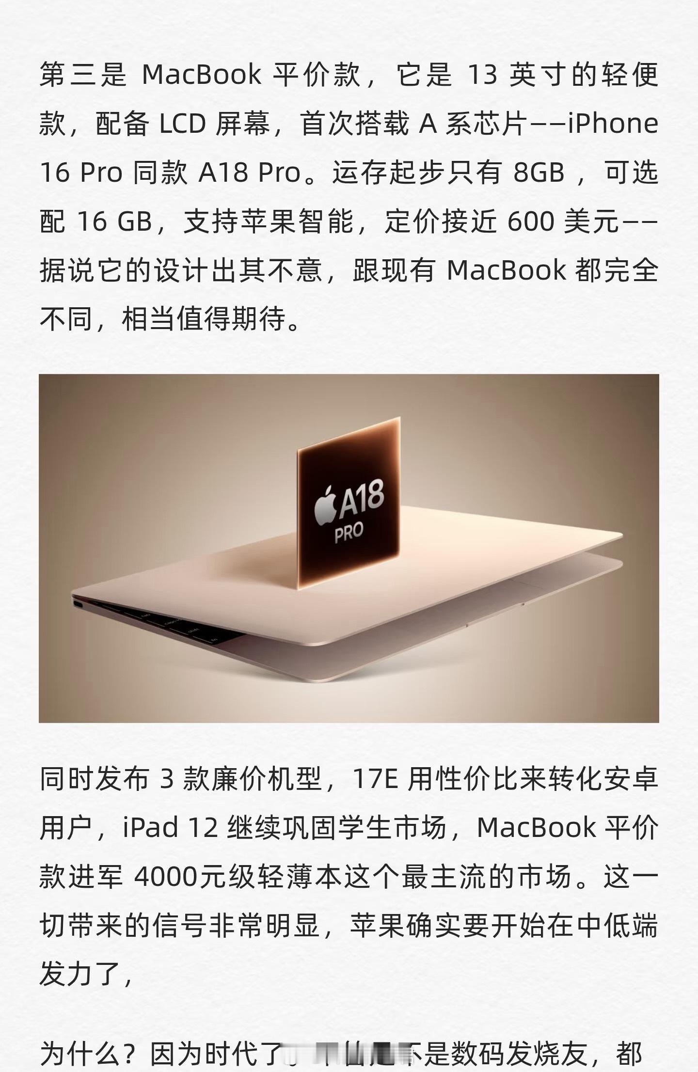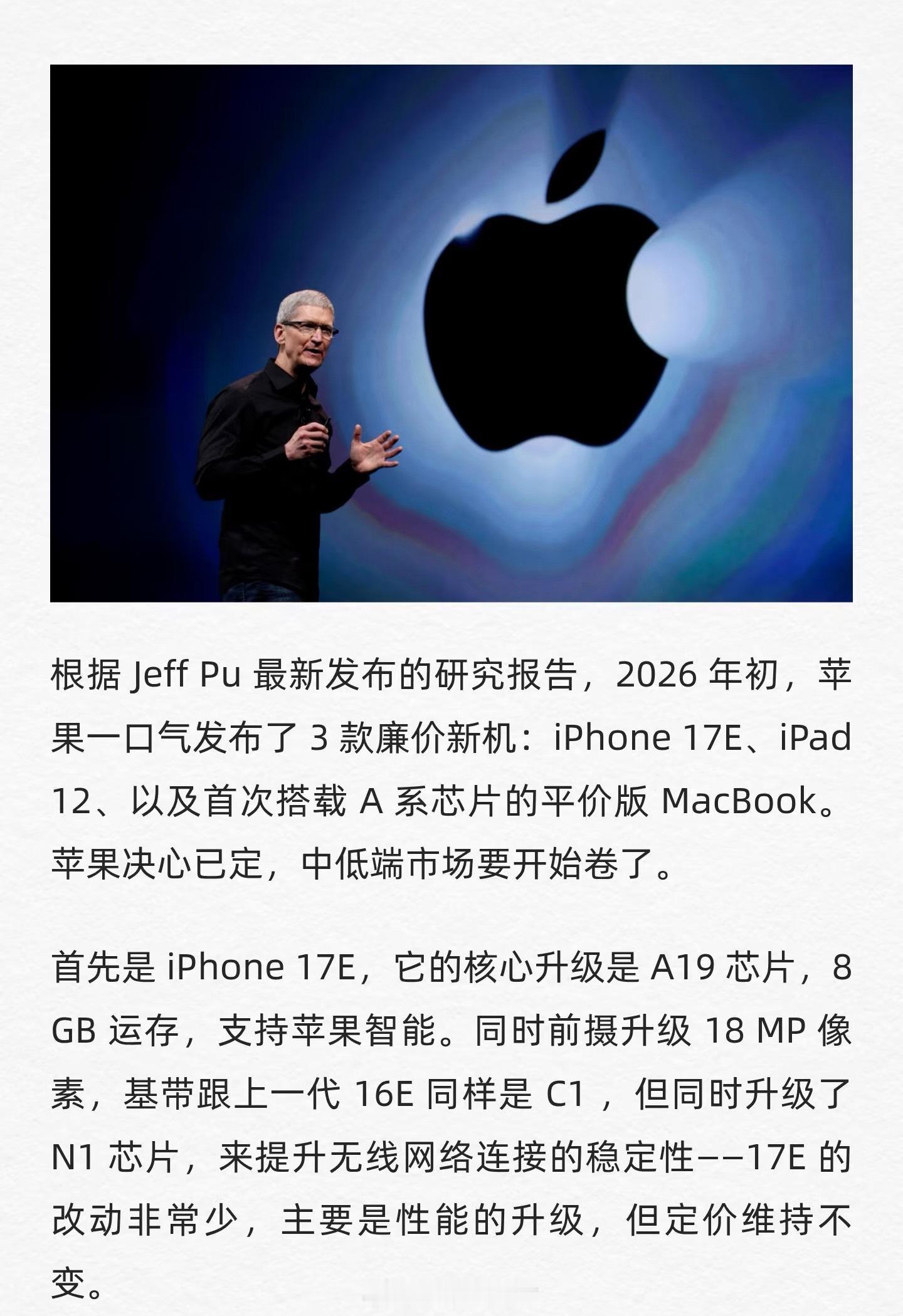 苹果2026年春季推出三款低价新品,涵盖iPhone、iPad和MacBook,主打学生和轻度用户~