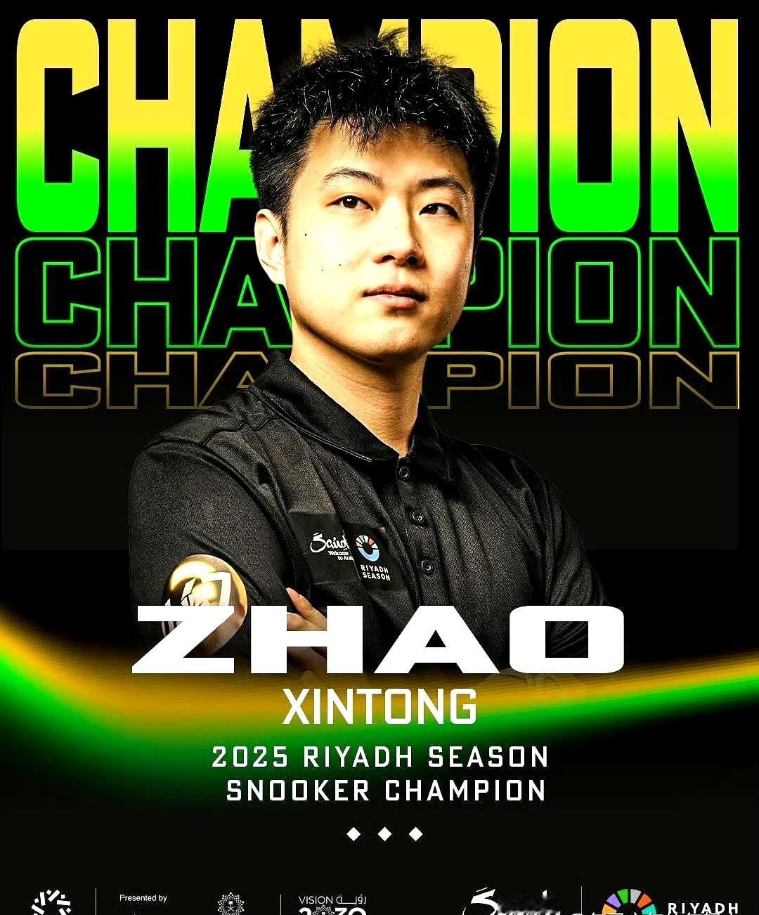 赵心童是利雅得赛季锦标赛冠军。 三场比赛25万英镑奖金到手,夺得个人职业生涯首个邀请赛冠军,打破7个月冠军荒。 小赵能获冠军总是好事,希望他再接再厉获得更多的冠军! 请以后不要滥用“冠军荒”还有什么“爆冷”之类词汇。 今年以来,丁俊晖先后击碎了火箭老马塞大师钢炮囧哥墨飞小特萝卜等超一流选手,没有谈话一线 半决赛4-3 逆转世界第一贾德·特鲁姆普,特别过瘾。 一周前冠中冠半决赛2-6输给了特鲁姆普,且对手赛后的发言让人不舒服。 今天的逆转结束连败算是出了口恶气,决胜局凭借防守压制获胜,霸气。 加油! 我童重回巅峰