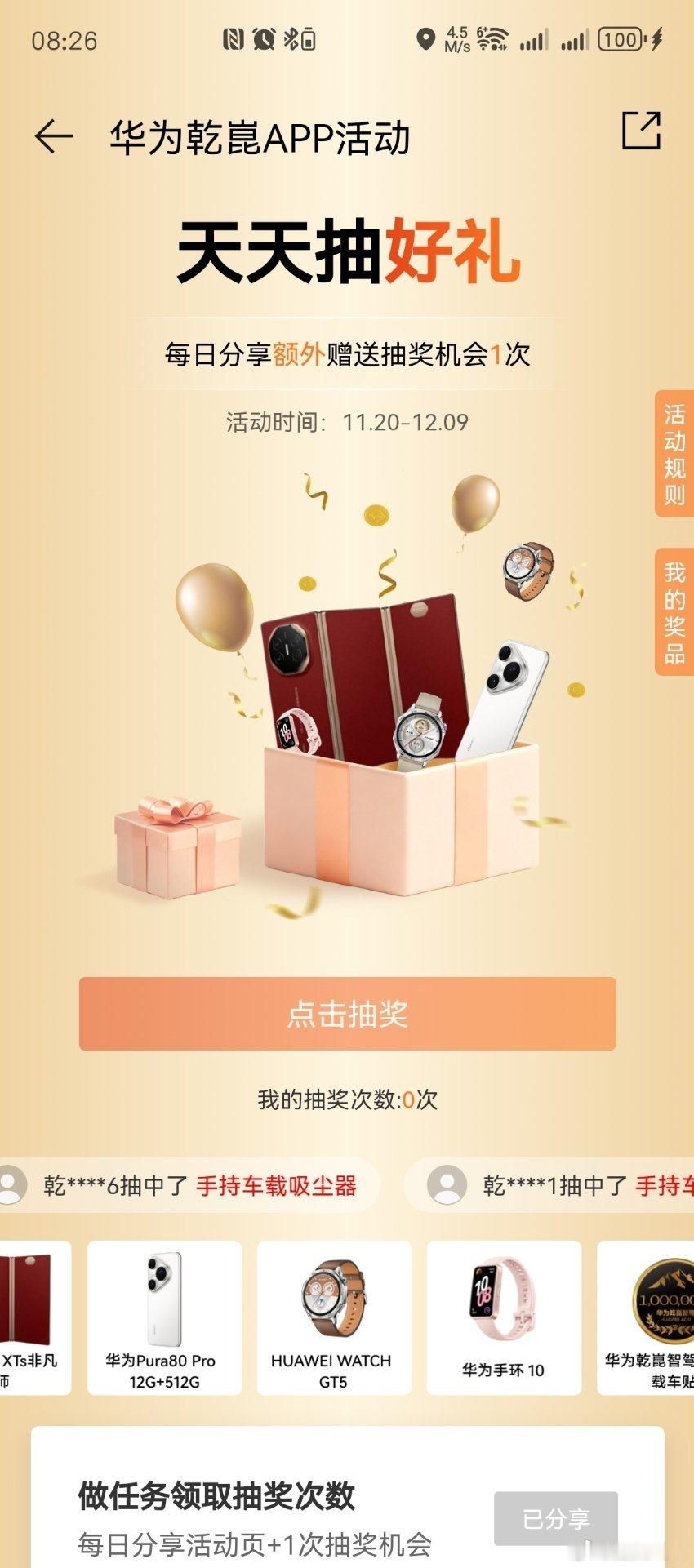 好家伙,我的智界R7车友是真厉害!乾崑智驾APP最近在抽奖,我的车友们不是抽中手机就是抽中吸尘器,最差的也有靠枕套装!而我,这么多天就抽了个寂寞!