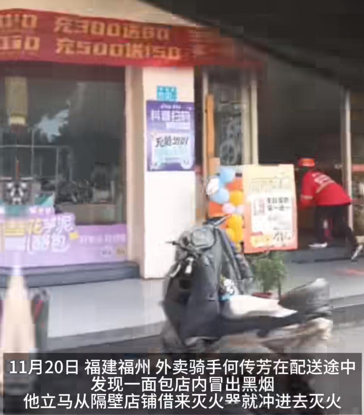 外卖小哥秒变消防员!近日,福建福州。外卖小哥取餐途中看见面包店冒烟,想都没想拎起灭火器就往里冲!救完火默默离开,深藏功与名。给这位暖心骑手点个赞![赞]福州外卖小哥救火后继续淡定送餐