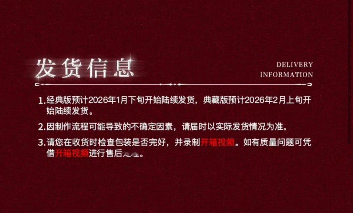 大家可以先把Q音地址设置好 明年一月下旬开始陆续发货然后把WeChat余额准备好 只能微信支付提前准备好等下丝滑下单!