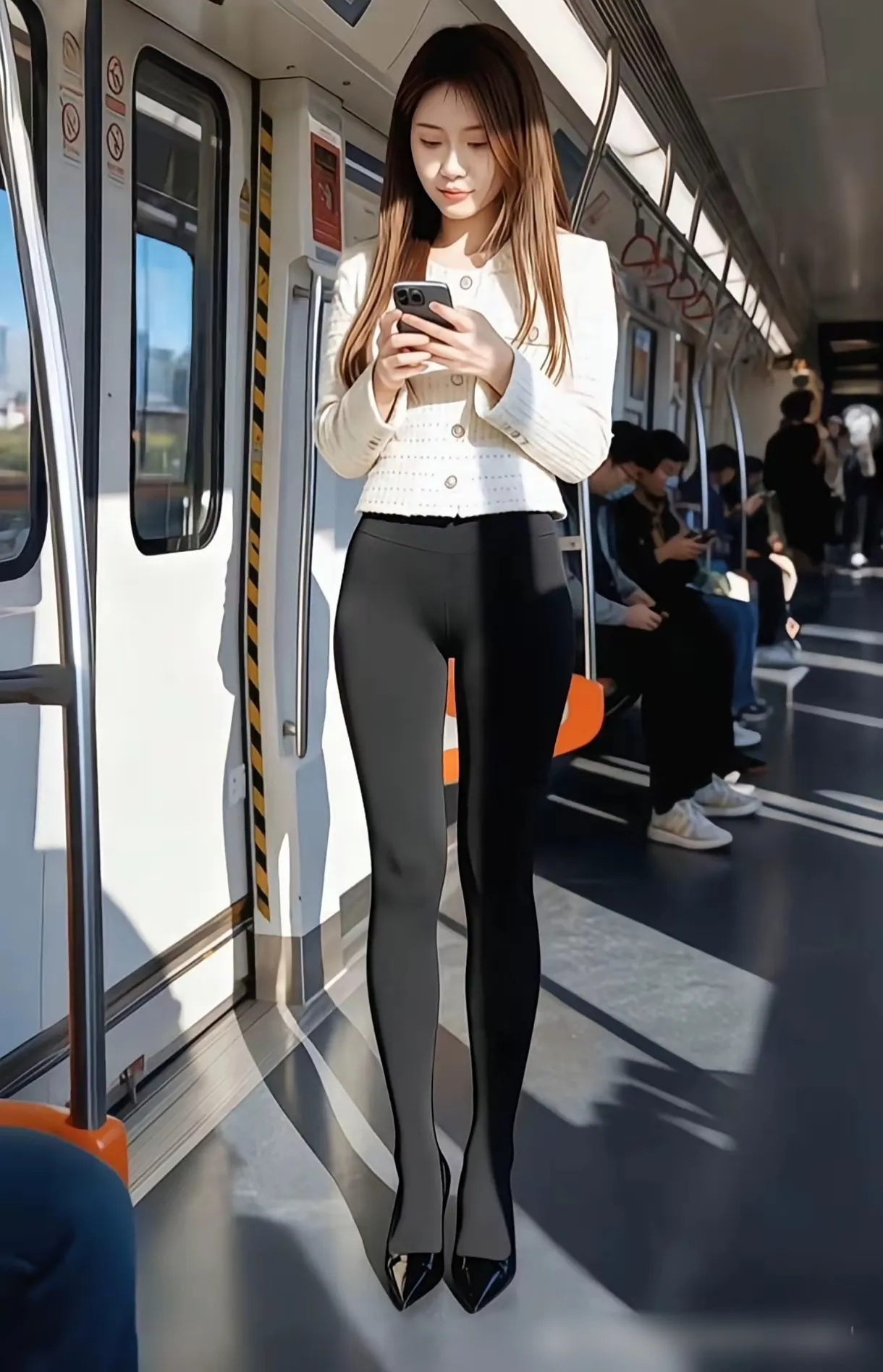 在地铁上看到个时尚女孩,手机不离手,黑白穿搭超有气质。她穿的是黑裤子白上衣,甜美。黑白配穿搭美学 地铁穿搭女神 地铁女神穿搭 黑白穿搭风