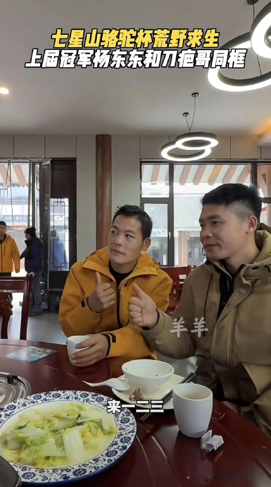 刀疤哥同框上届冠军!被AI造出老婆 刚凑到这桌饭局,就听见刀疤哥瞪着眼喊:“现在连网络短剧、AI合照都给我整出来了!” 对面坐的是上届荒野求生冠军杨东东,俩人碰杯时,刀疤哥挠着头笑:“我这水平,拿冠军想都别想!” 旁边人起哄“强强联手”,他却摆手:“我就会钻林子找吃的,这些虚的搞不来。” 粉丝早把他俩P成“大刀CP”,可这糙汉全程懵:“网络跟洪水猛兽似的,我应付不来。” 饭桌上的白菜还冒着热气,他攥着杯子的手都有点僵。 你说,是刀疤哥的“野生感”太戳人,还是网友就爱把糙汉硬拽进流量里?