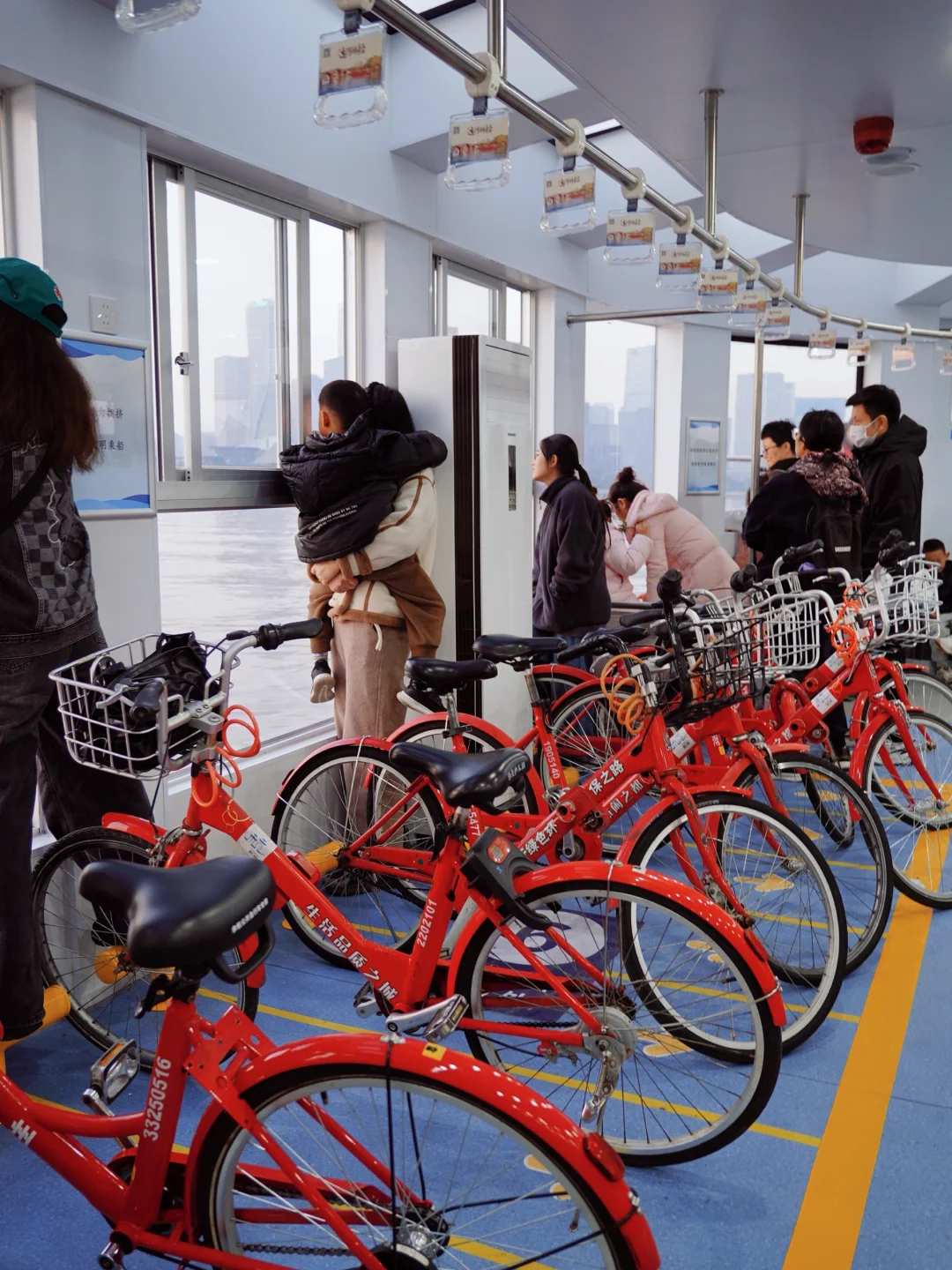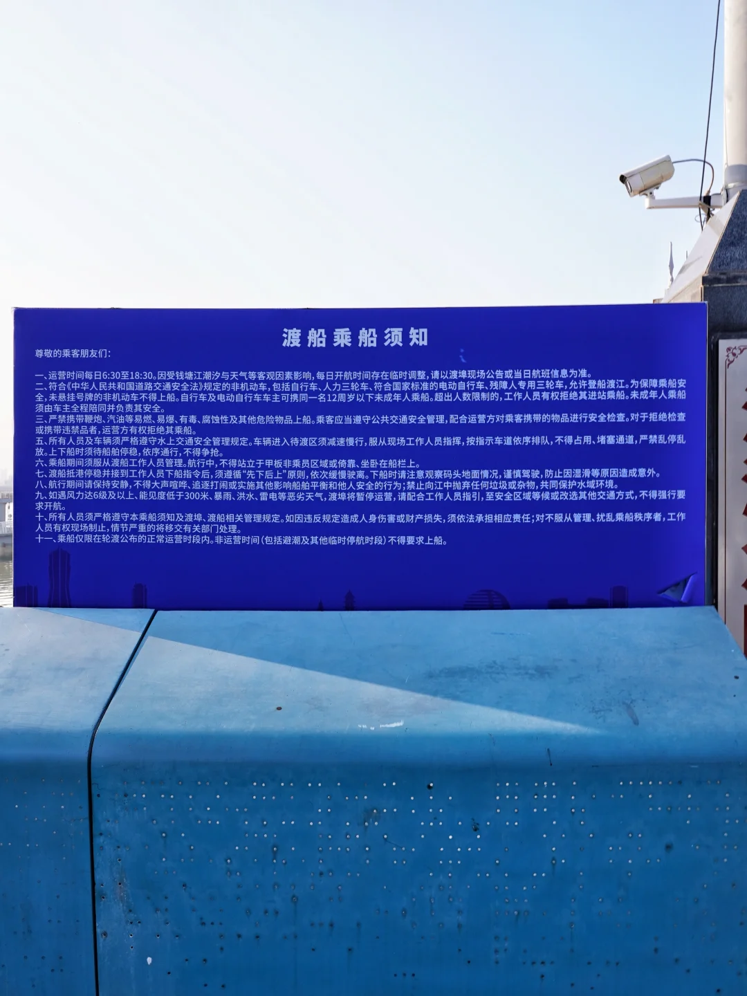 因为西兴大桥要拆除重建,杭州开通了奥体中心到城市阳台的轮渡!🚢居然是免费🆓的!!杭州人民真的享大福!😭一定要去体验一次🥳 目前轮渡仅对非机动车开放,需要骑电动车🛵/自行车🚲才能上船,想体验的可以提前扫个共享单车过去。船票🆓,但码头需要刷Zfb公交码。 我们是下午3:50左右到的奥体中心渡埠,已经有不少人排队了。因为受潮汐天气影响,4:50才发船,刚好赶上日落🌅,夕阳下波光粼粼的江景,真的太美了!🥰 🚢轮渡运营时间: 早6:30-晚18:30(高峰15min/班,平峰30min/班) ⚠️每班次只能上50个车,满员要等下一班。 🕙船程:15-20分钟 📍码头位置: 城市阳台渡埠(之江路和庆春路交叉口) 奥体中心渡埠(闻涛路和飞虹路交叉口) ❗️❗️Tips: 1、码头附近共享单车较少,周末高峰期建议提前找好单车骑过去; 2、想拍日落,建议早点去排队,赶上4:30的班次Zui佳; 3、发船时间会根据潮汐天气因素临时调整,乘船须知放在图最后!