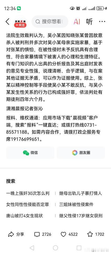 从判决书中可以看出,张某作为吴小某的继父,吴小某与张某实际共同生活的时间也就三个月左右。 案发当天,吴小某的母亲因与张某吵架,有家不敢回,留了吴小某与张某单独在家,这给张某的作案,留下来时间和空间。 张某的行为之所以没有得到吴小某的反抗,原因在于吴小某知道张某杀过人,还见识过他家暴母亲的行为,在吴小某心里,应该是很怕这个人。 张某违背公序良俗,还恬不知耻地作案时拍照,真是把人性的恶表现得淋漓尽致! QJ罪一般为三年以上,像这种有前科,对自己亲人下手的罪犯,应当从重处罚,四年半的刑期,显然有点太轻了!刑事认定标准 法律今怎么判 刑期规定 服刑年限 刑事行为年龄 多久出判决 拒不扶养罪 遗弃罪追诉时效 多久出判决 拒不扶养罪 遗弃罪追诉时效 同案犯刑期