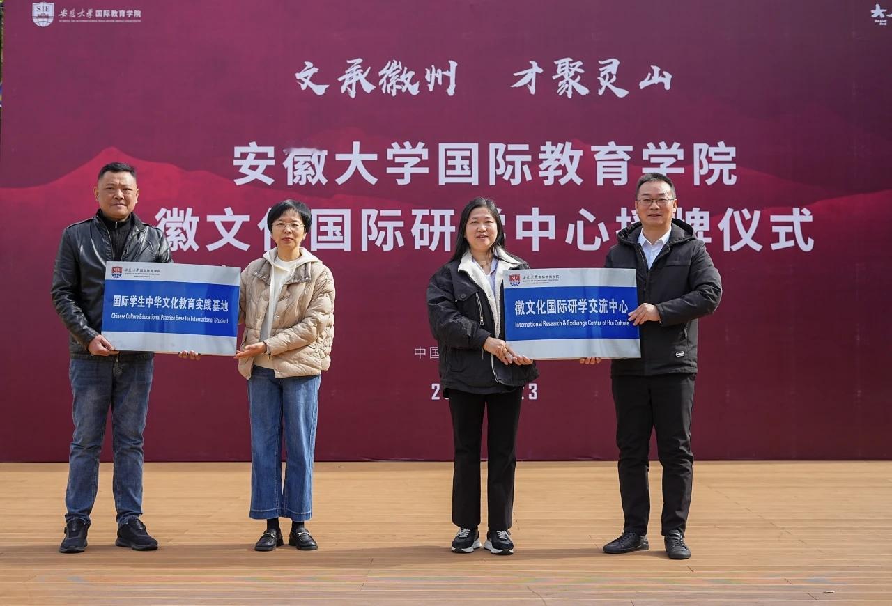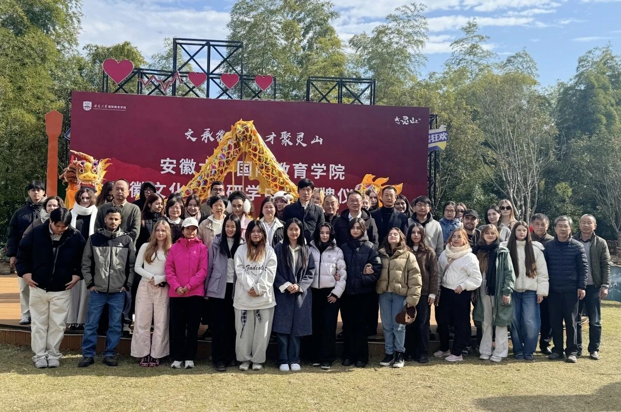 “文承徽州 才聚灵山”安徽大学与徽州区携手打造国际化研学实践基地 | 皖美冬日 | 第十五届安徽国际文化旅游节 11月23日上午,“文承徽州 才聚灵山”安徽大学国际教育学院徽文化国际研学中心授牌仪式在大灵山旅游度假区圆满落幕。 本次活动由安徽大学国际教育学院、徽州区文化旅游体育局、徽州区文旅融合发展中心主办,由浪漫红文旅集团、大灵山旅游度假区承办,吸引来自10余个国家、40余名外国留学生共同参与。 嗨徽州 大灵山旅游