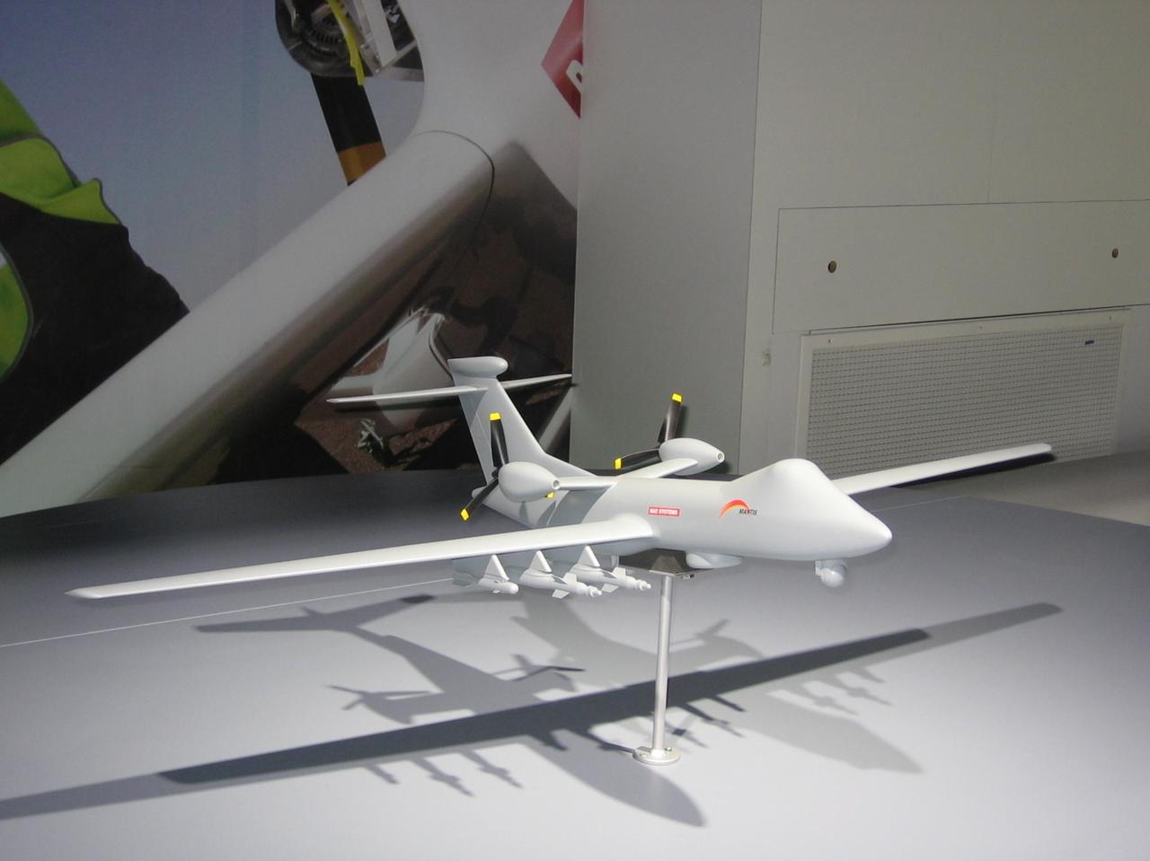英国无人作战飞行器(UCAV)技术验证项目,BAE系统公司“螳螂”(Mantis)无人自主系统概念技术验证机。“螳螂”是一款双引擎涡轮螺旋桨动力UCAV,翼展约22米,与MQ-9“死神”(Reaper)无人机大致相当。