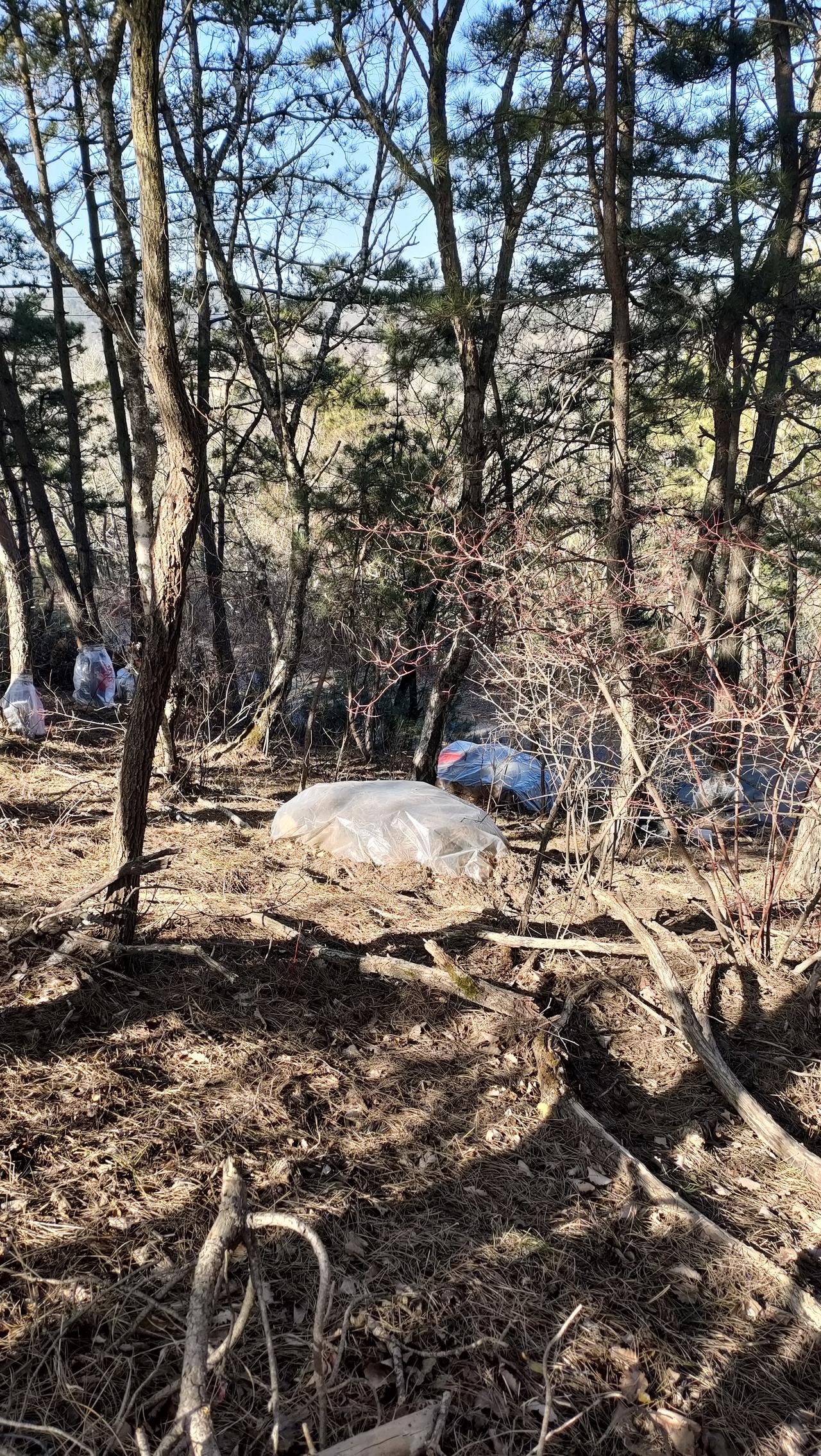 在海拔1800米的神道岭树林中,发现了许多用塑料薄膜覆盖的树枝,有些是将树根包裹,不知道有什么作用?